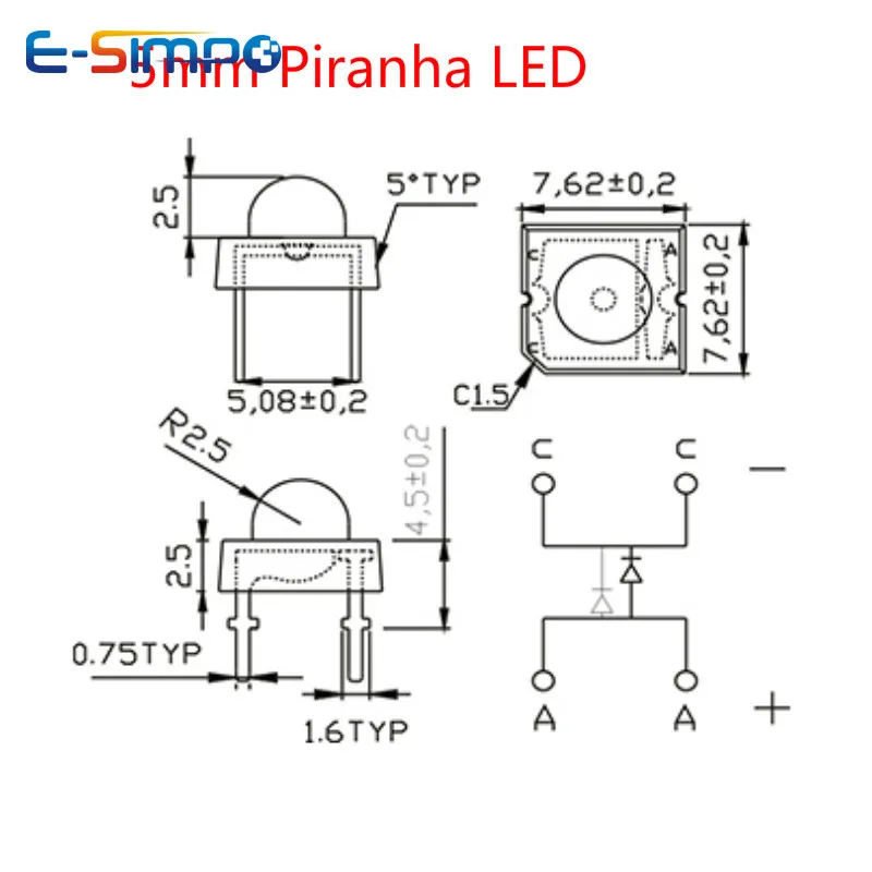 100 шт. розовый цвет с типом спайки Round 3 мм F3 5 мм F5 20mA прозрачный светильник-излучающие-диоды для подавления переходных скачков напряжения 4Pin высокое Яркость Piranha Superflux светодиодный
