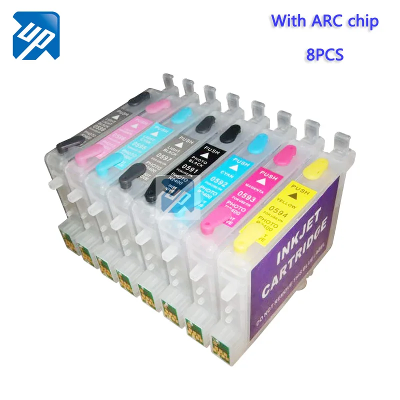 8 шт. пустой пополняемый картридж для чернил для принтера epson R2400 с чипом ARC T0591 - T0599