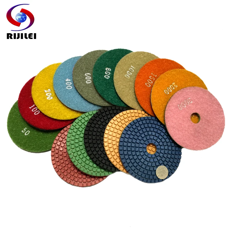RIJILEI 10 шт.лот 4 дюйма100 мм влажные полировальные колодкигранитные полировальные колодкиАлмазные полировальные колодки для мраморных алмазных инструментов (4DS1)