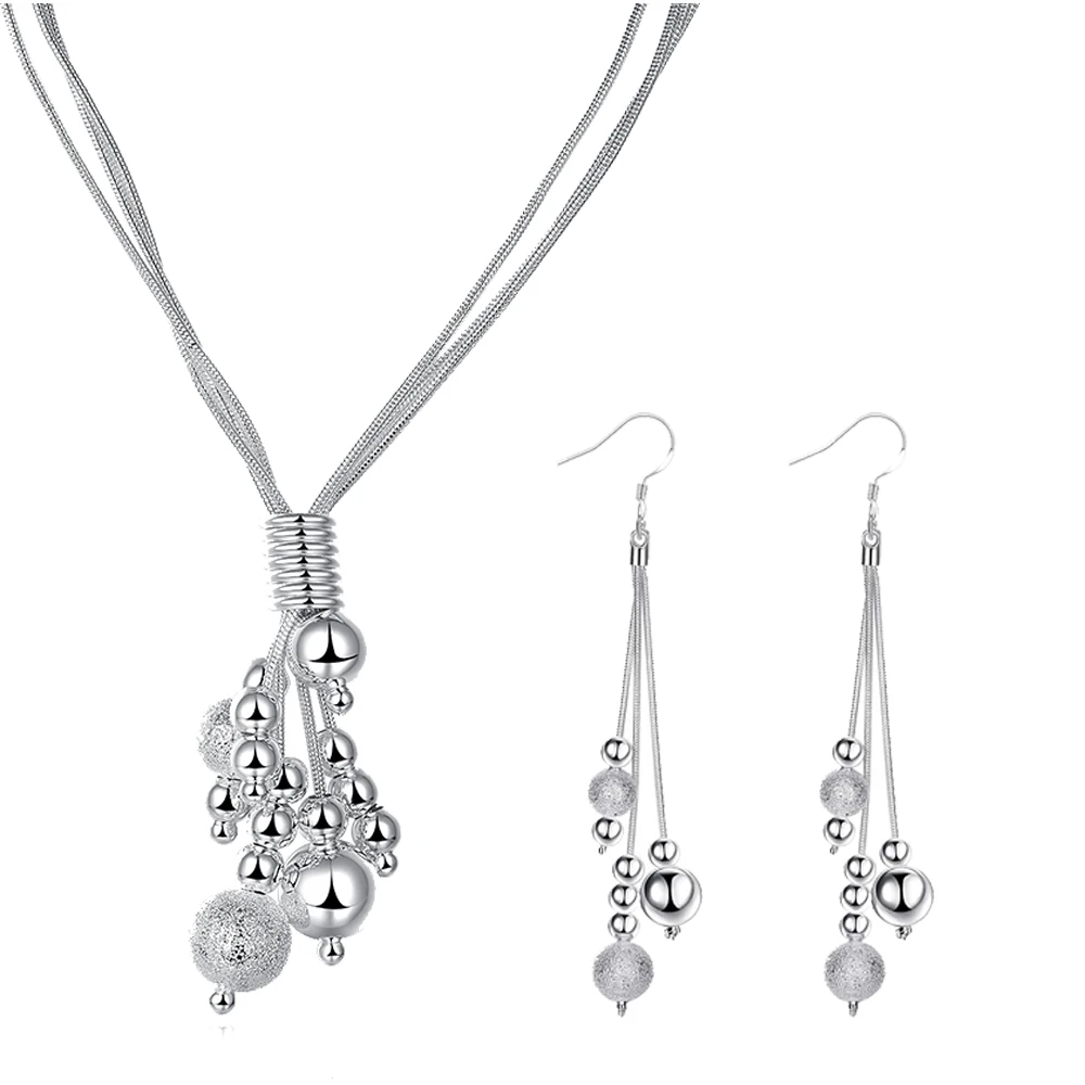 Комплект ювелирных изделий из стерлингового серебра 925 пробы, недорогие комплекты для вечерние, Модный комплект из ожерелья и сережек с тремя бусинами для женщин, 2 предмета
