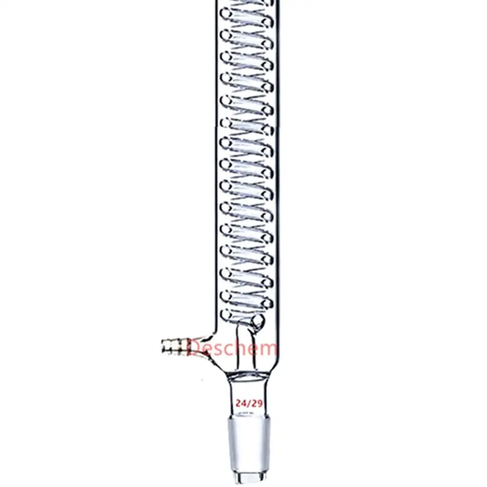 300 мм, 24/29, Грэм конденсатор, стеклянная катушка теплообменник, лабораторная стеклянная посудаИзготовлен из боросиликатного стекла 3,3 Конденсатор Graham, с 10 мм соединительным шлангом.С 24/29 соединениями длина куртки составляет 300 мм.