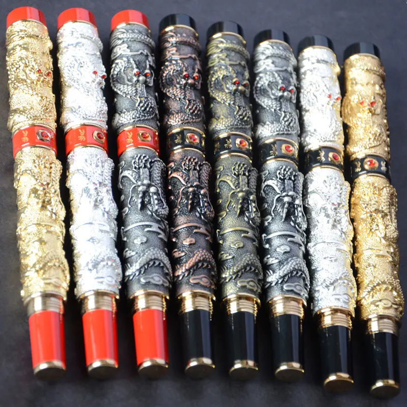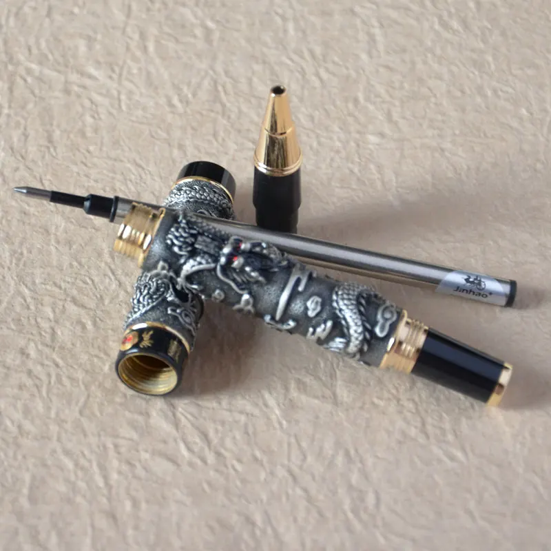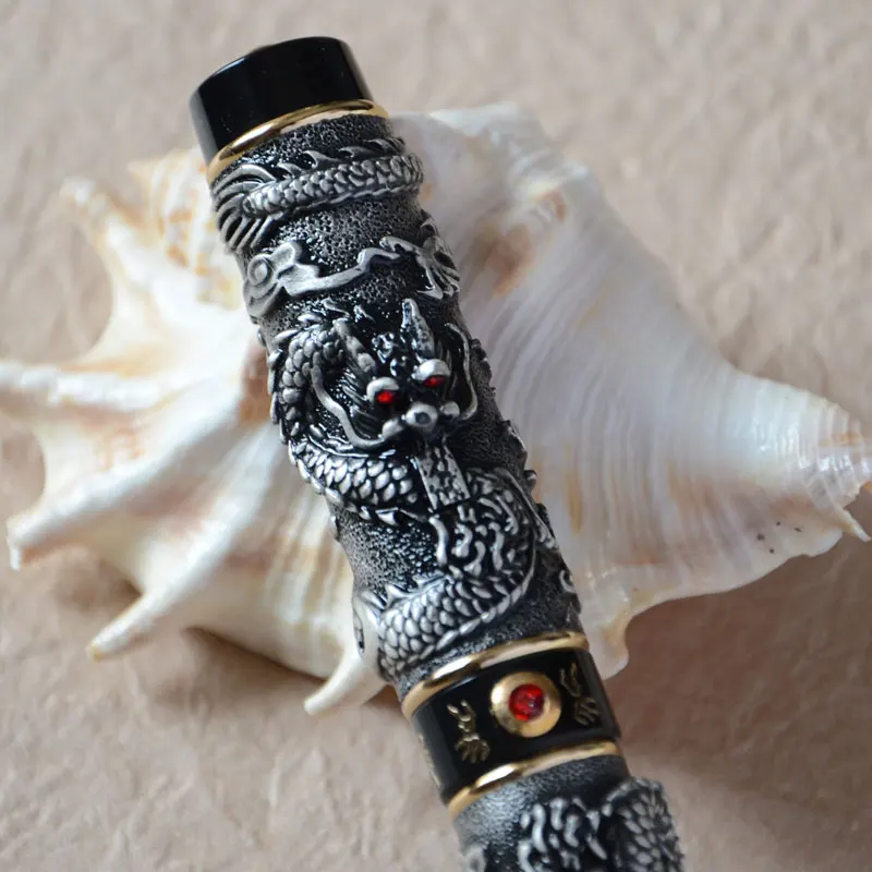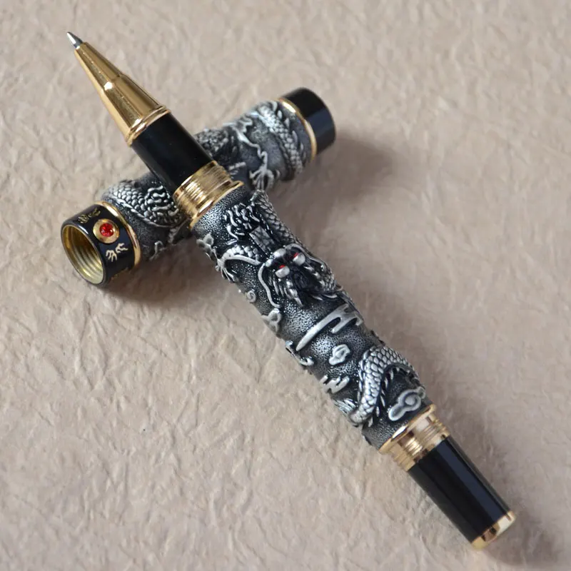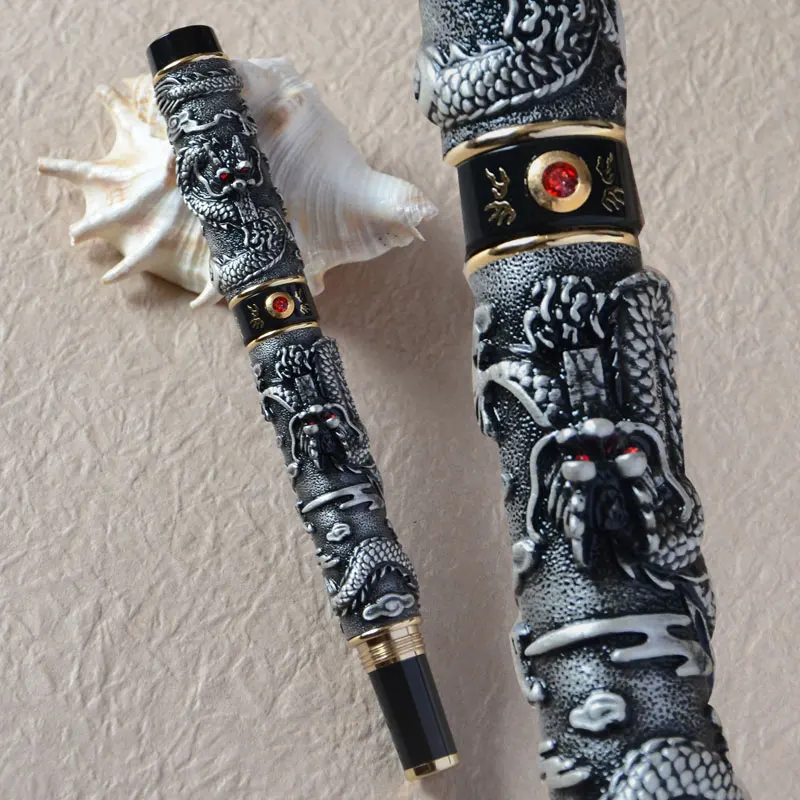 Ручка:Серая бочка с двумя играющий Дракон жемчуг, Золотой зажим и отделка