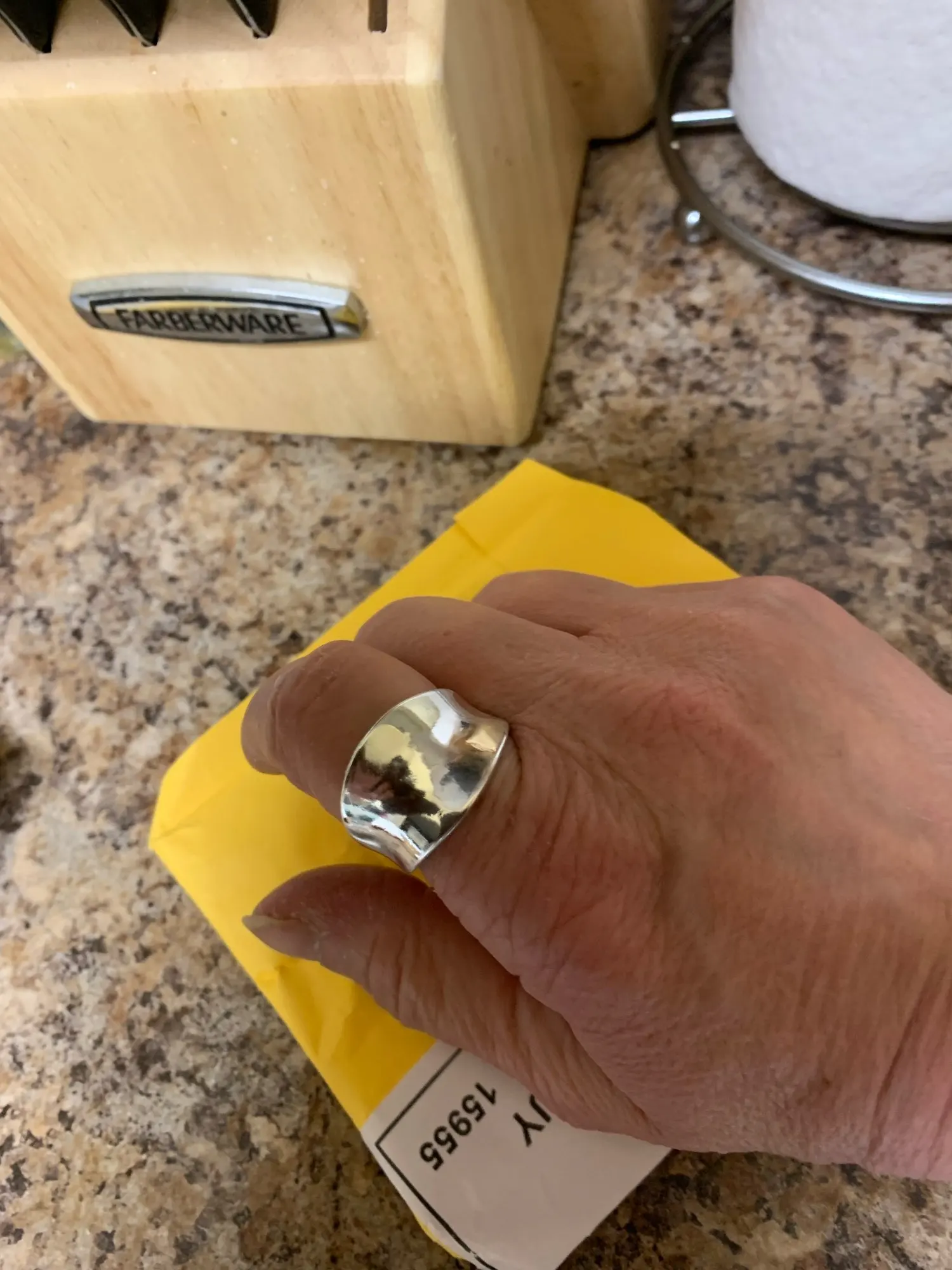 I love it and it fits great. It's too heavy to sleep with it on though and a bit chunky on my pointer as I ahe slim hands, but it's a statement ring and it's very nice