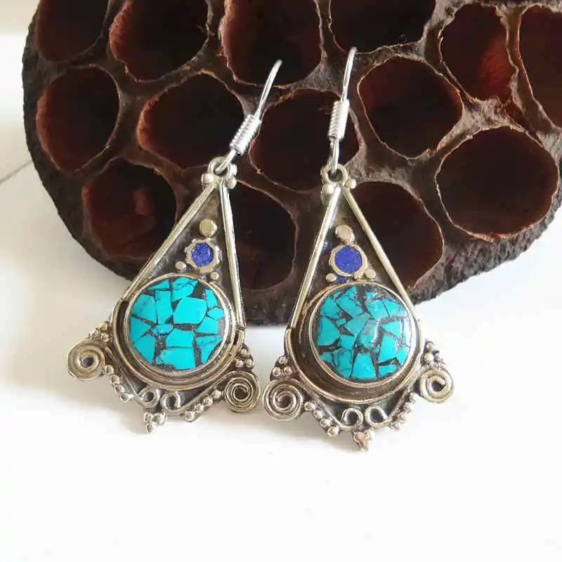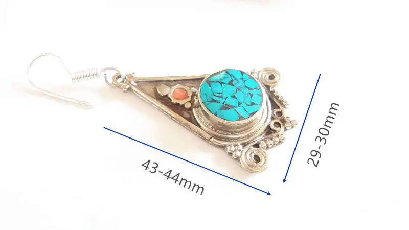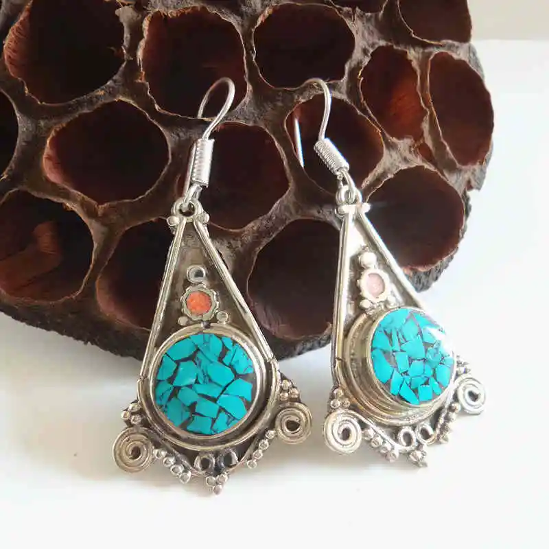 Непальская ручная бижутерия, тибетские этнические серьги, медные инкрустированные бирюзовые винтажные Ушные Кольца E102