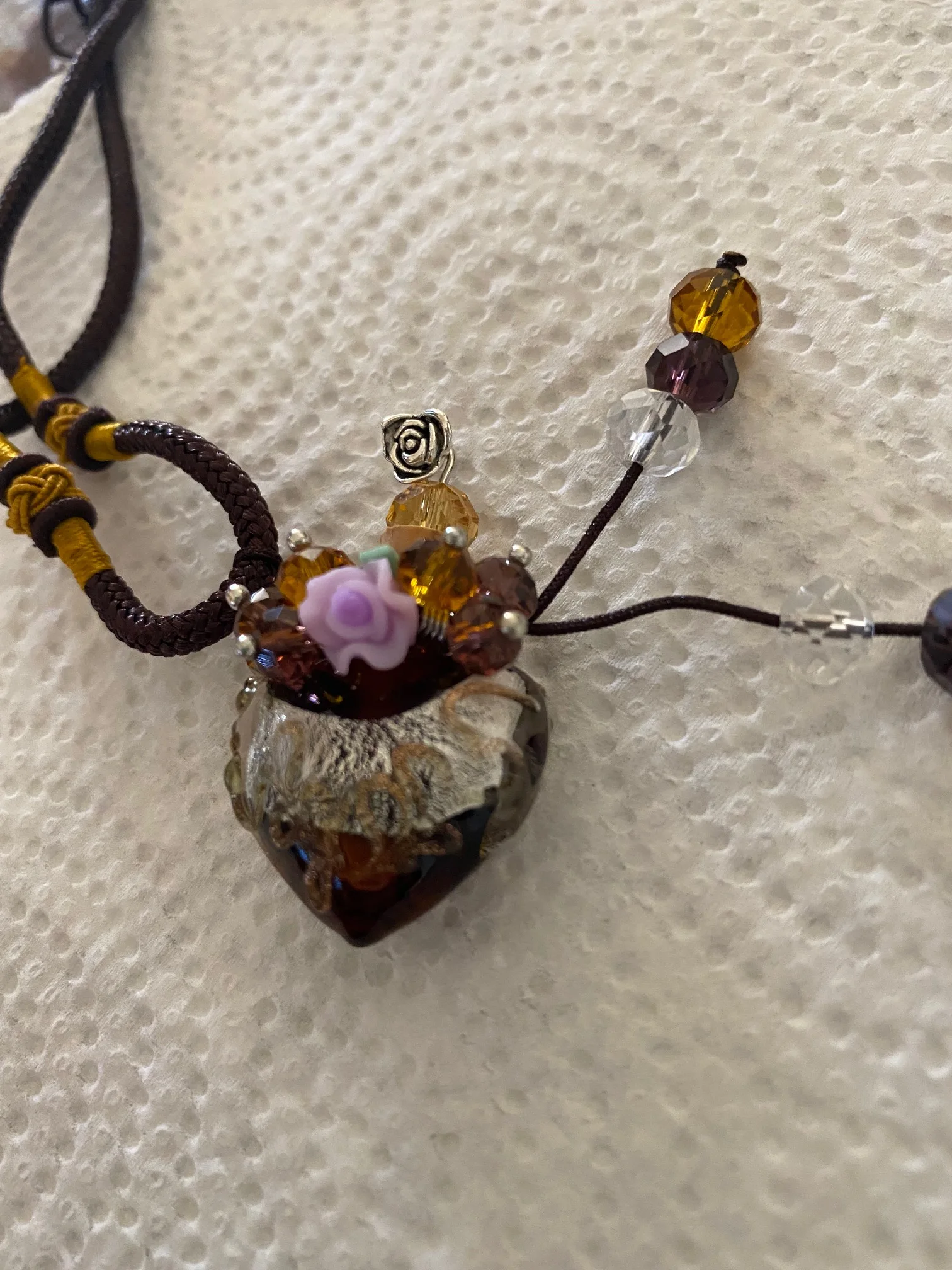 1 шт., подвеска в виде сердца с цветком из венецианского стекла