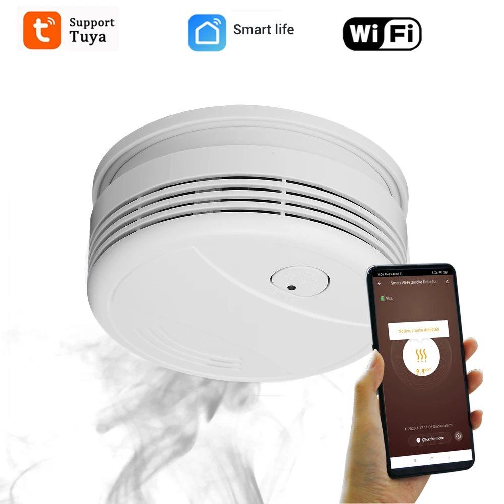 Беспроводной датчик дыма detetor для домашней системы сигнализации 433 МГцwifi Tuya пожарная сигнализация домашняя система безопасности Дымовая пожарная защита