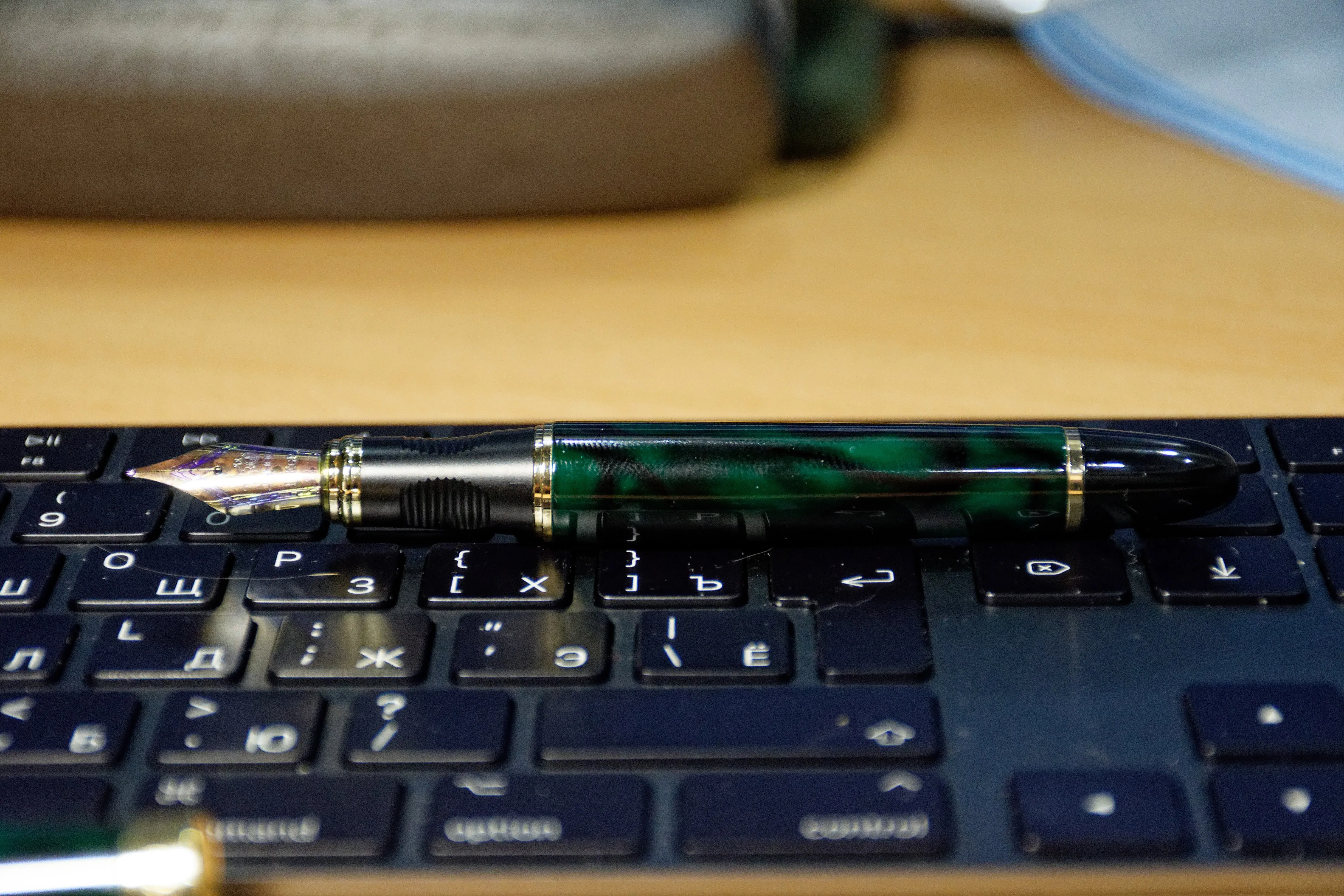 Эта ручка красиво пишется, гладкий наконечник, который шире большинства китайских перьев.