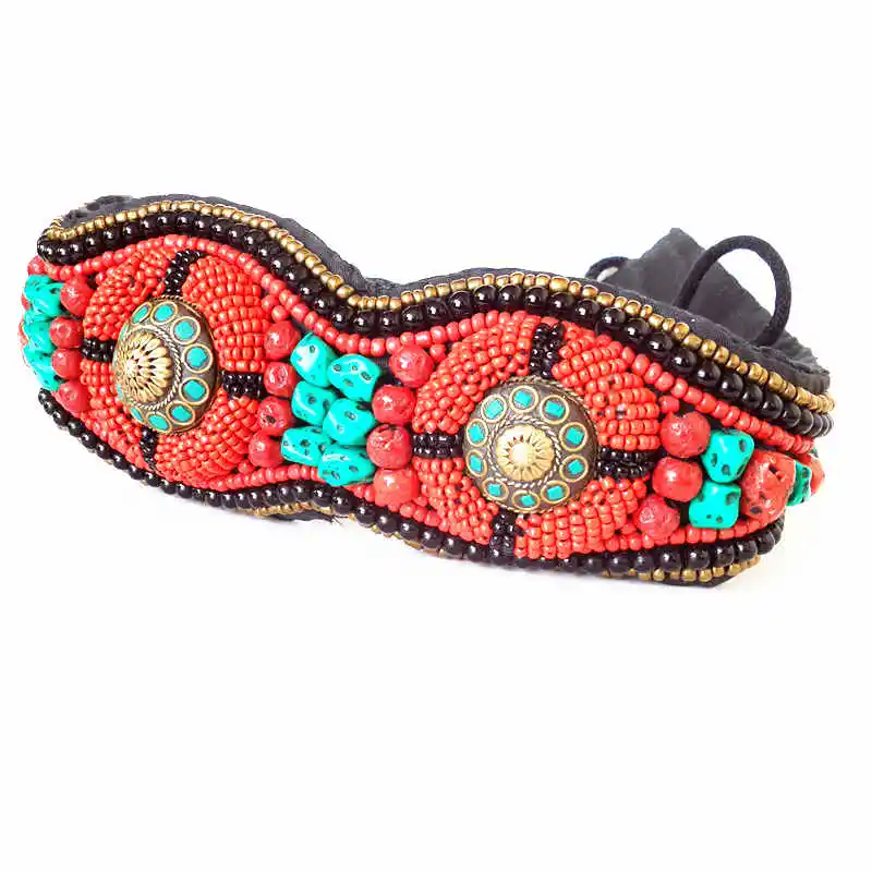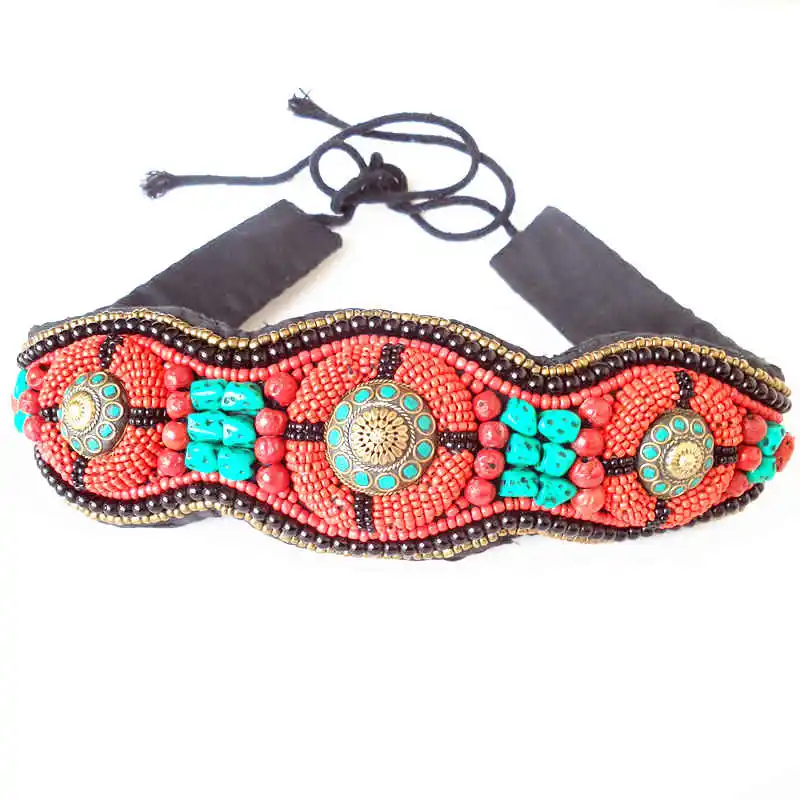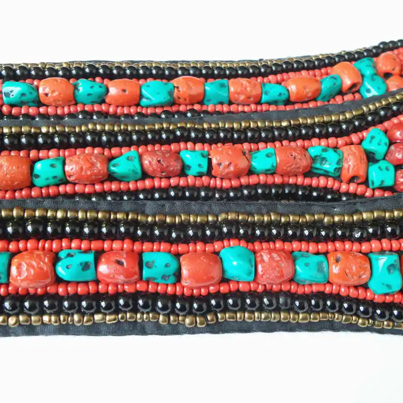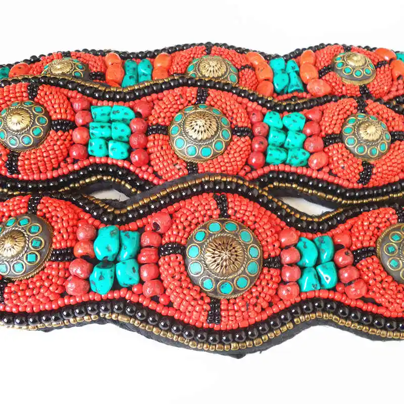 Широкий бисерный пояс HDC0629 из тибетской ткани, пришитые вручную, этнические пояса из разноцветных камней кораллового цвета