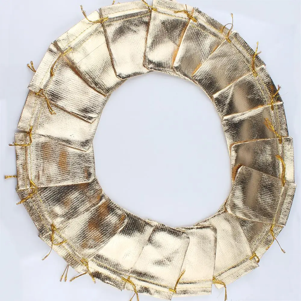100 золотистого цвета тканевые сумки с 12x9 см Упаковка для ювелирных изделий Подарочные Сумки на шнурке и свадебные мешочки для ювелирных изделий