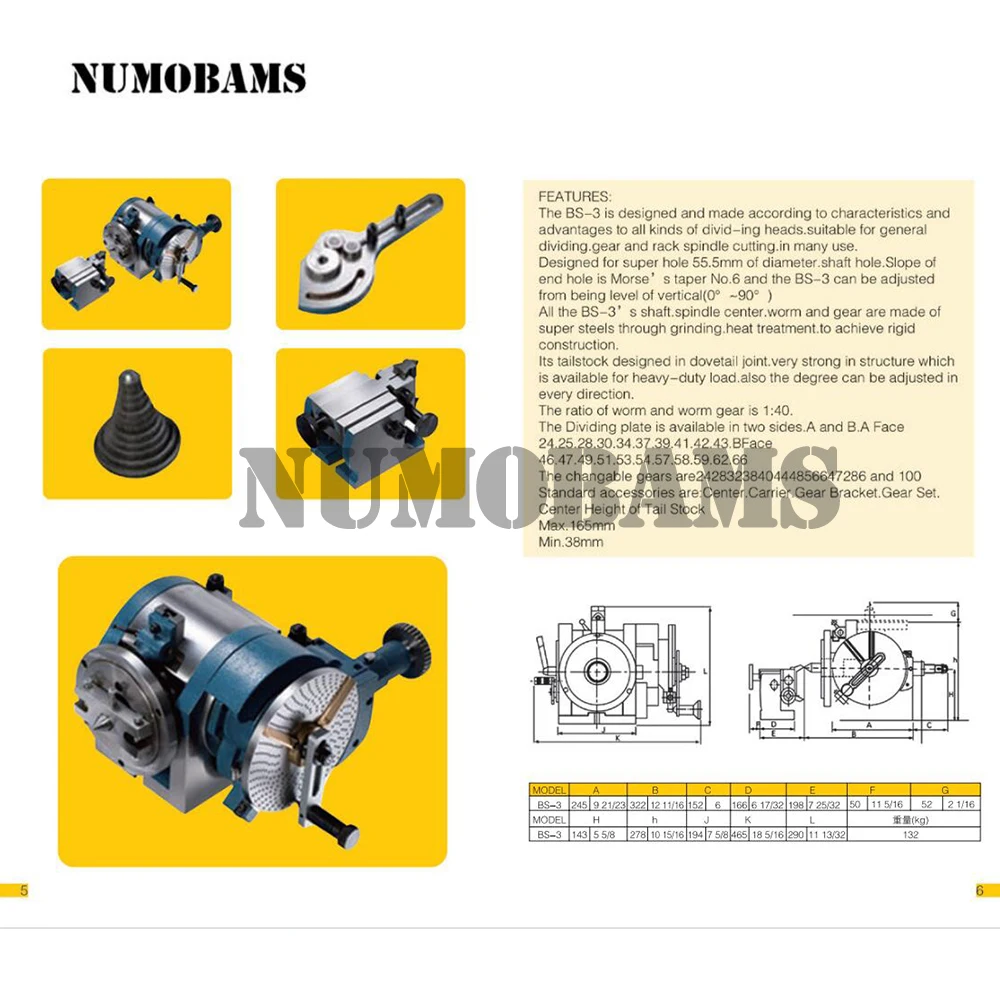 Полууниверсальная делительная головка NUMOBAMS BS-0 с 3-кулачковым патроном 125 мм для металлической мельницы