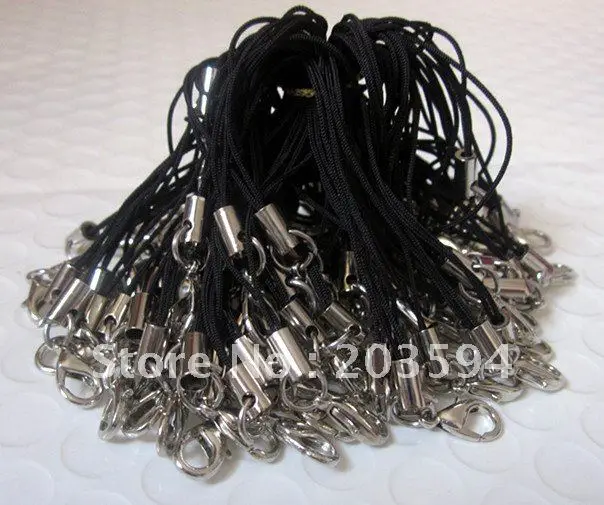 Новый черный ремешок для сотового телефона 1000 шт., шнур с лариатным ремешком и застежкой-лобстером, Ювелирная фурнитура 5 см