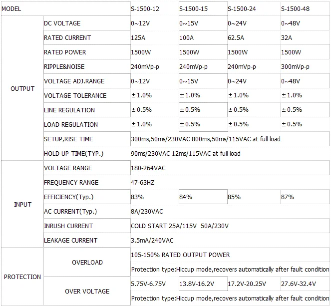 Регулируемый импульсный источник питания с одним выходом, 1500 Вт, 48 В, 32 А, 220 В