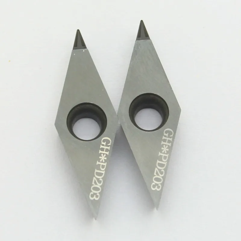 GH PCD наконечники вставки с высокой твердостью, хорошо Износостойкость, низкое трение и теплопроводность. В основном подходит для Обработка цветных металлов (e.g.Cu,Al,Mg,Ti,Al-сплавы с высоким содержанием кремния) и Неметаллические материалы (Е. Г. Стекловолокно, керамика, армированный пластик и т. Д.).