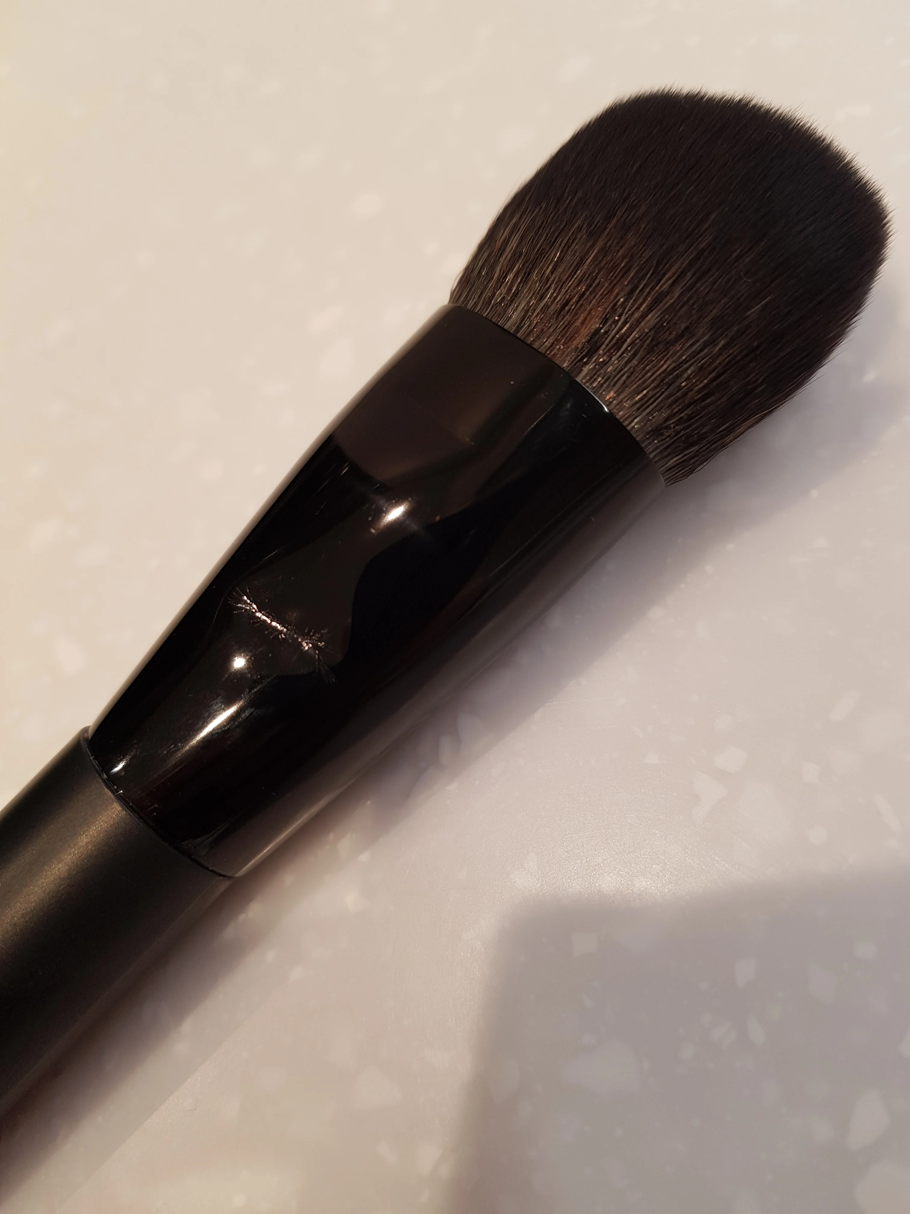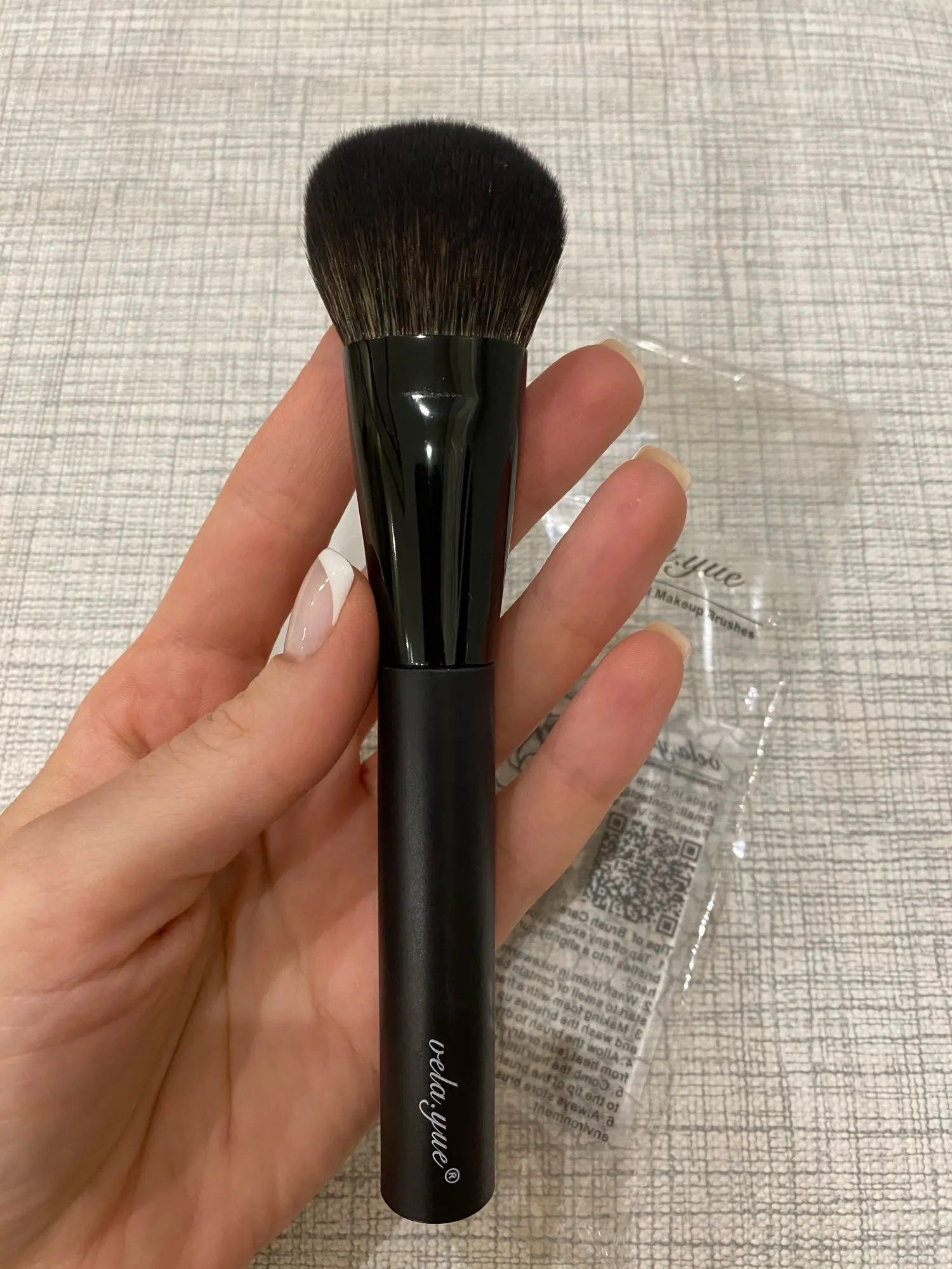 Уникальный дизайн, многоцелевая кисть для пудры и румян. Не линяет, не пахнет, ручка фиксируется прочно, хорошо сделана.