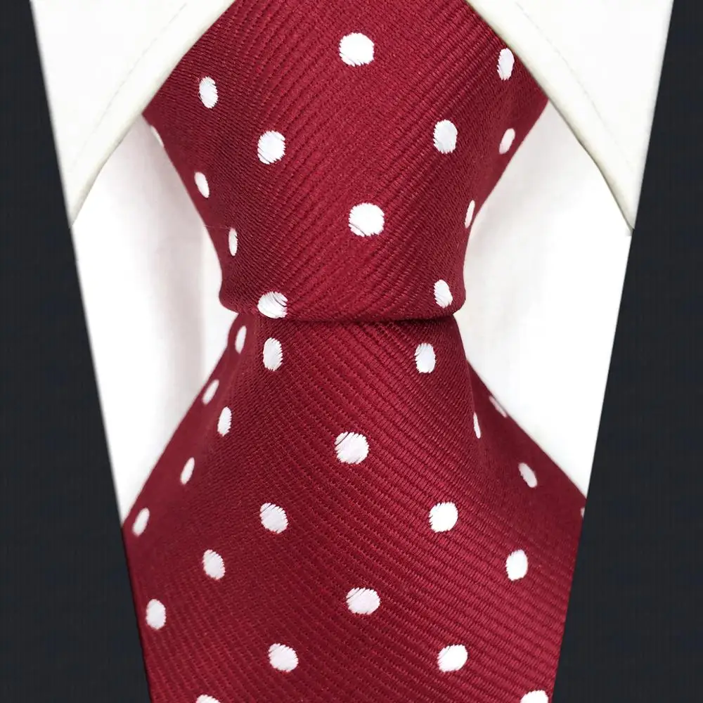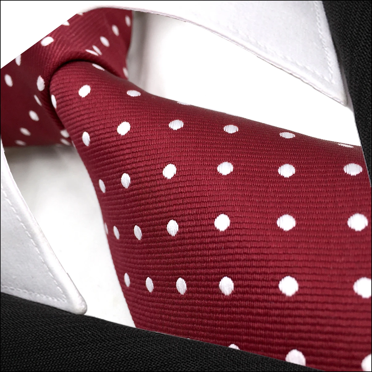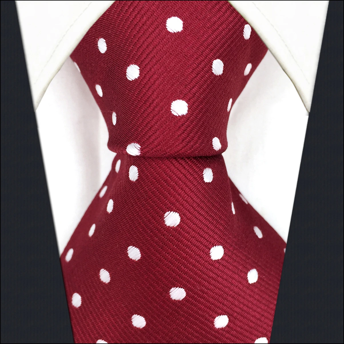 Мужские темно-красные и белые галстуки S15 в горошек, шелковые свадебные галстуки, очень длинные, 63 дюйма, 160 см, тонкие галстуки, модные галстуки