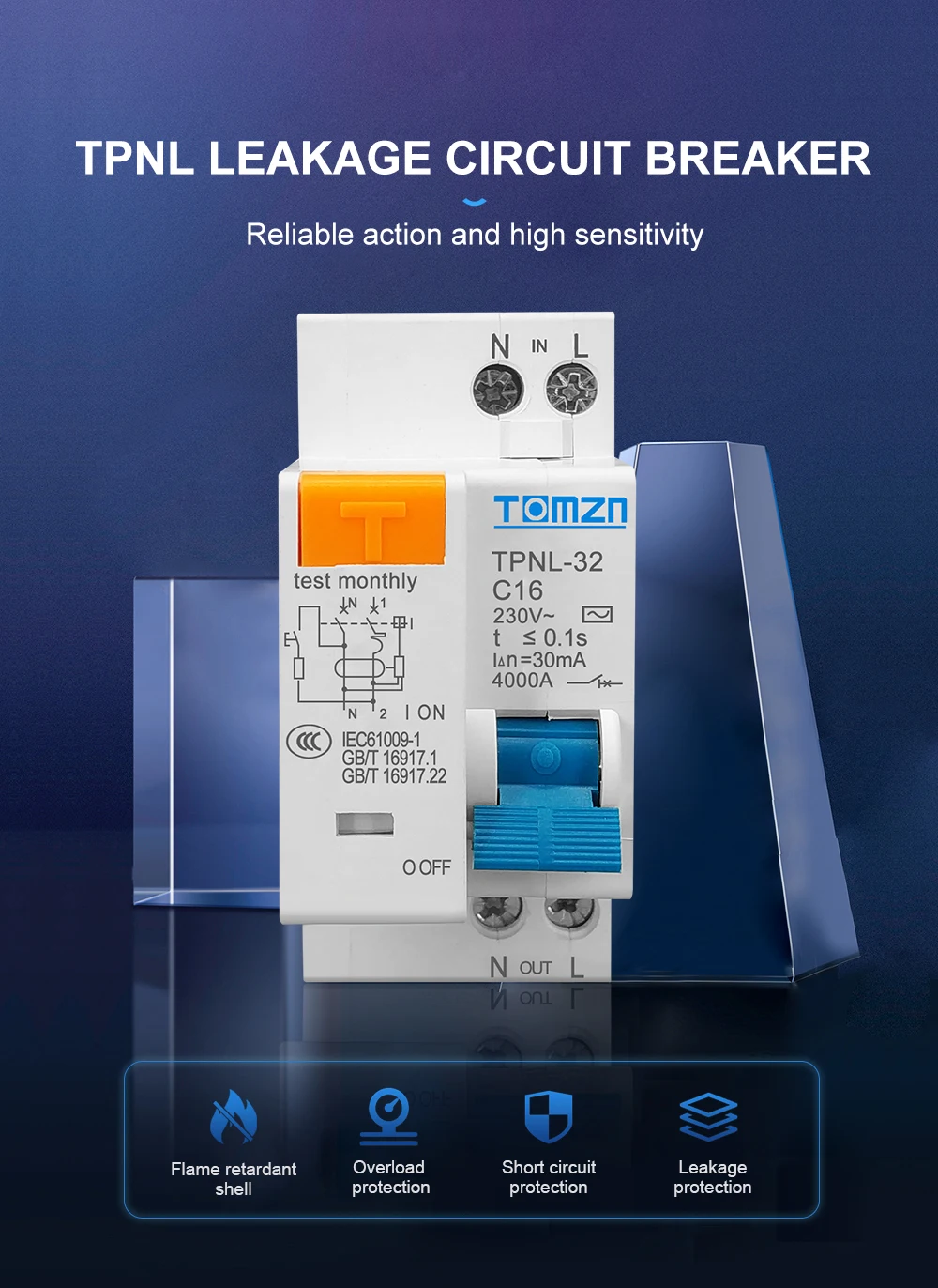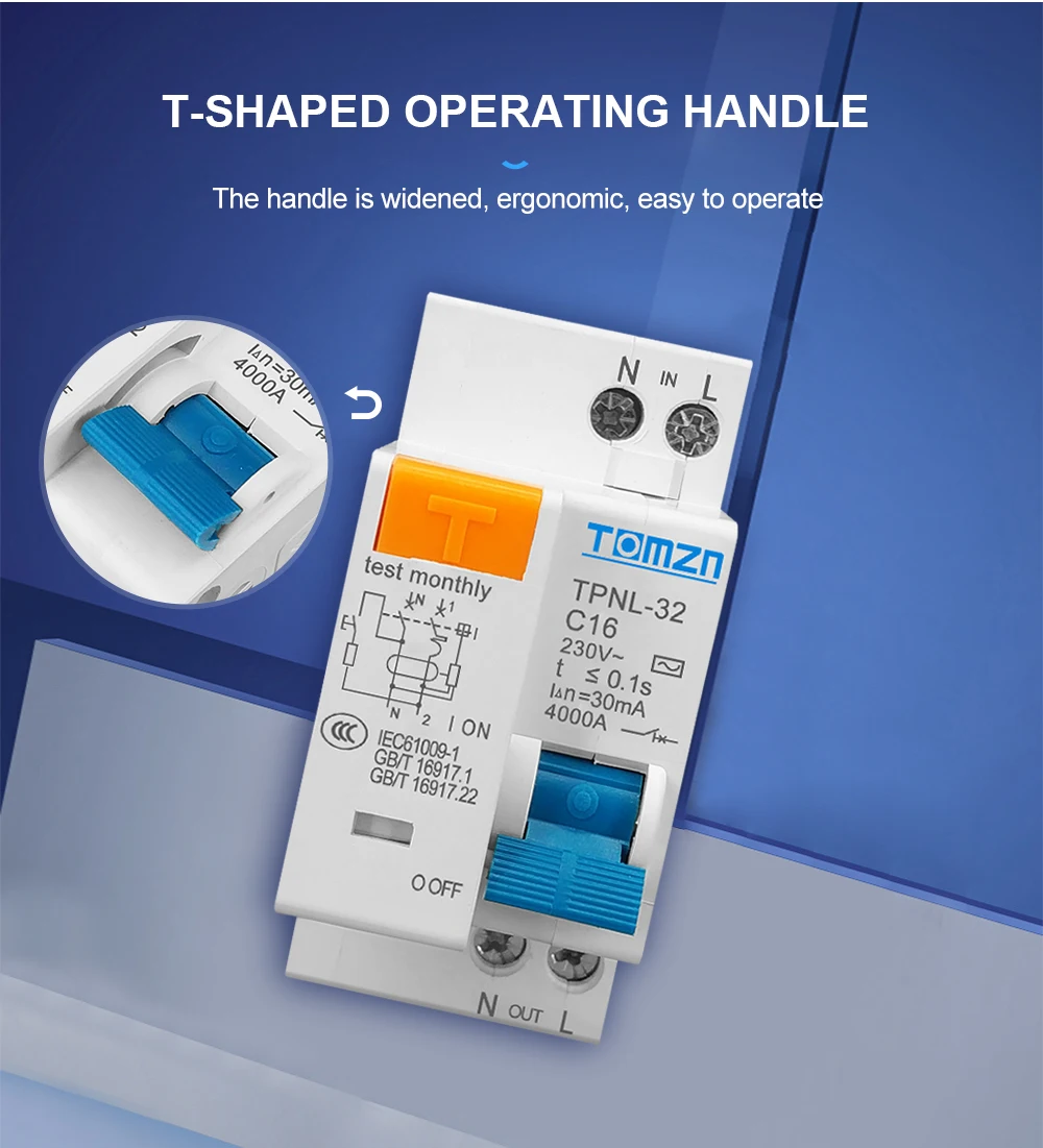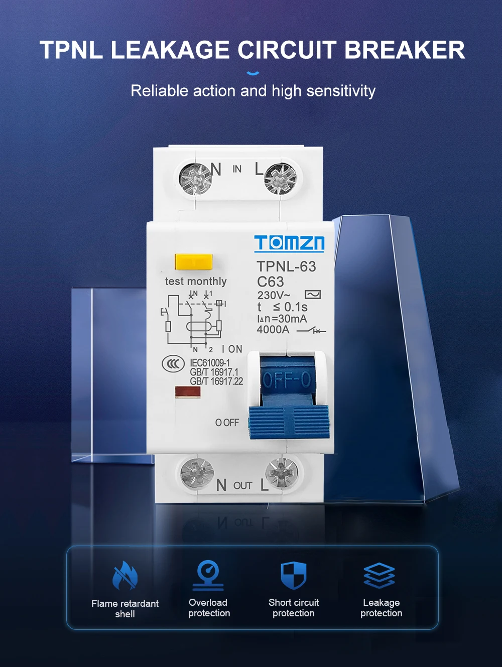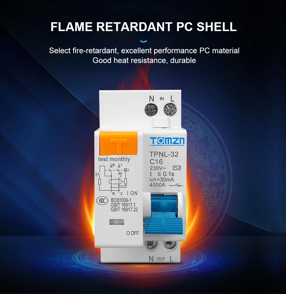TPNL DPNL 230V 1P + N автоматический выключатель остаточного тока с защитой от перегрузки и утечки короткого тока RCBO MCB