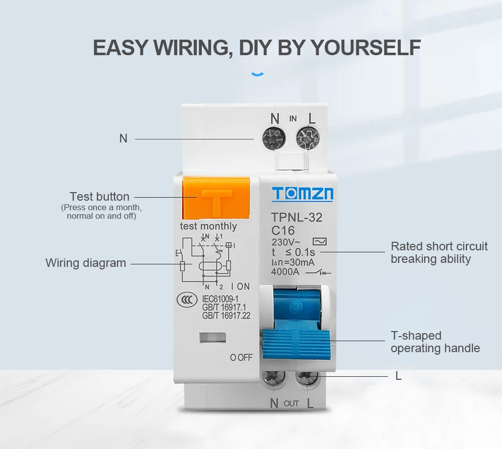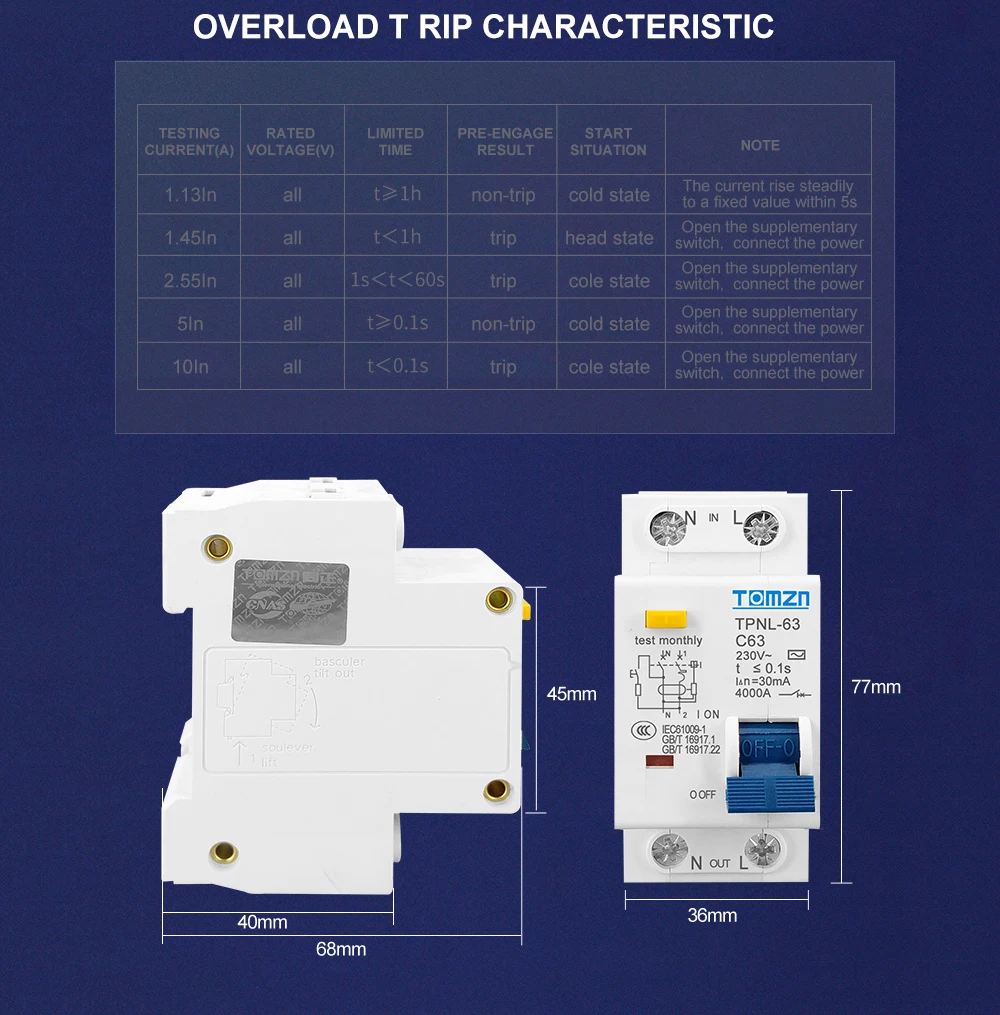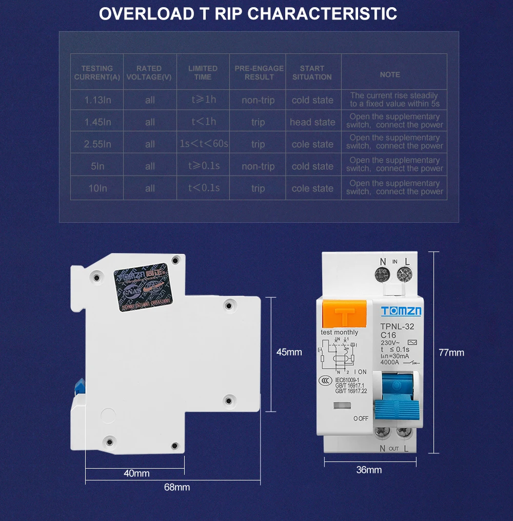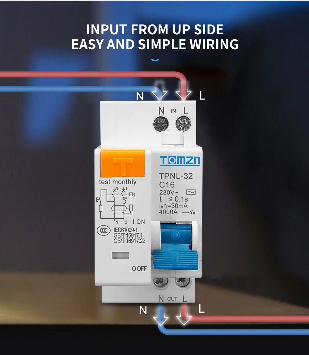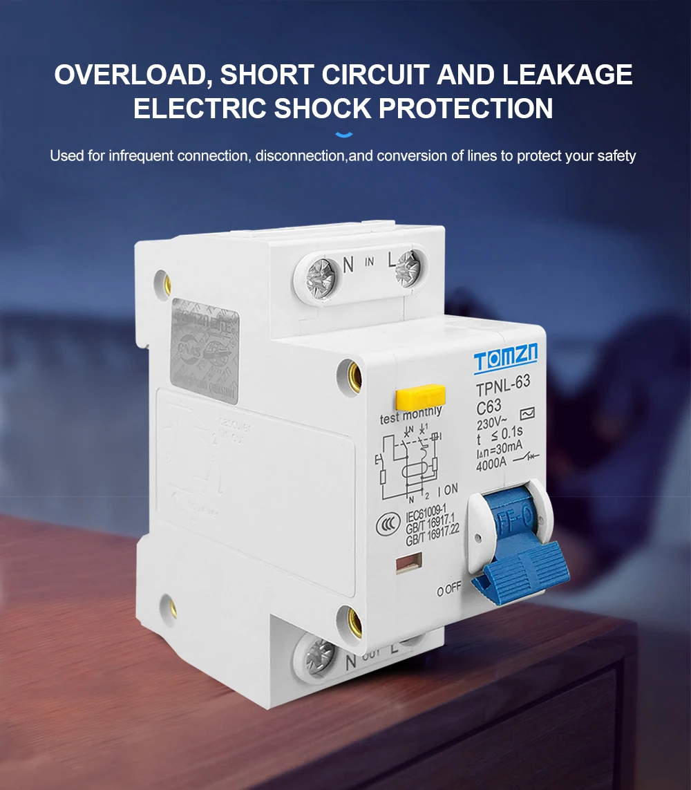 TPNL DPNL 230V 1P + N автоматический выключатель остаточного тока с защитой от перегрузки и утечки короткого тока RCBO MCB