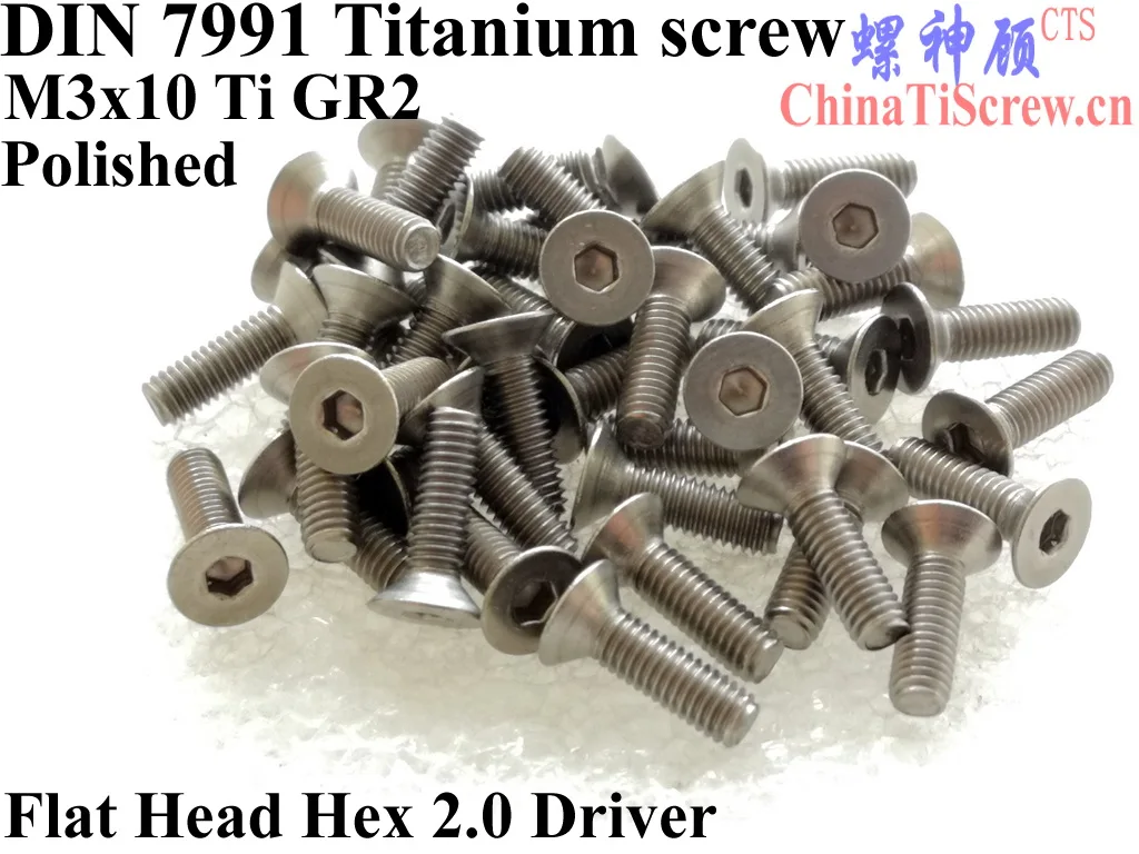 Титановый винт DIN 7991 M3, с шестигранной головкой, M3x4, M3x5, M3x6, M3x7, M3x8, M3x9, M3x10, M3x12, M3x14, M3x15, M3x16, M3x18, M3x20