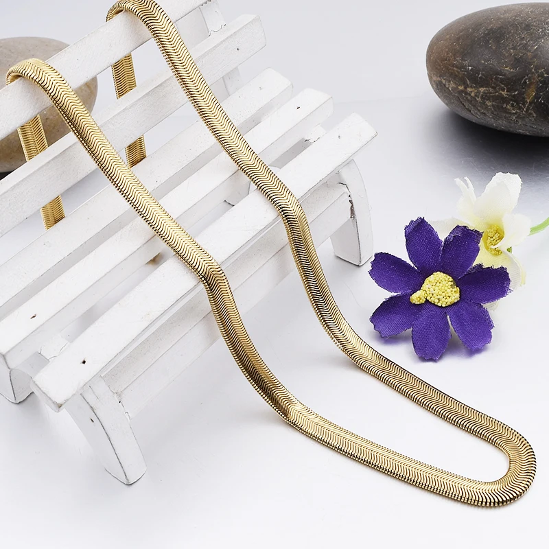 GOKADIMA 50 см, 6 мм, плоская цепь из нержавеющей стали золотого цвета, змеиная цепь, мужскиеженские ювелирные изделия WN110