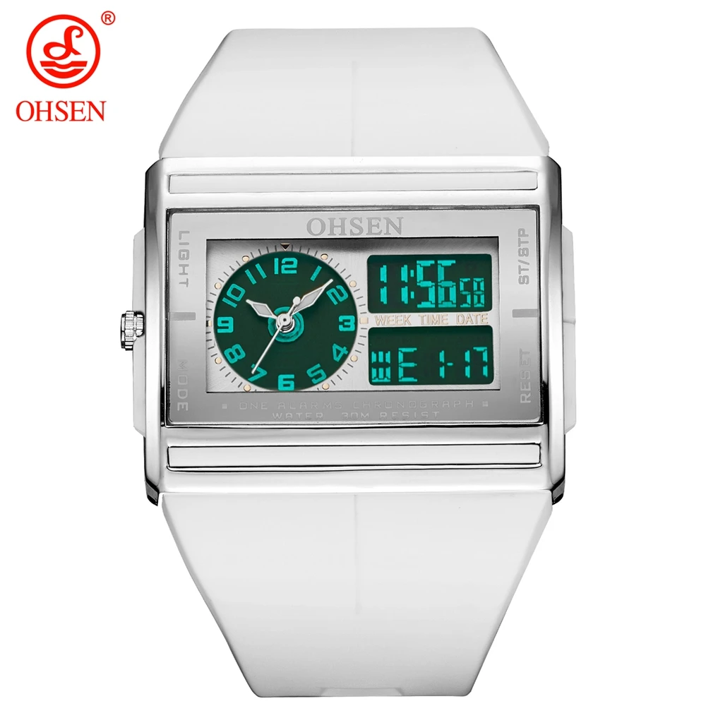Часы наручные Ohsen Мужские Цифровые кварцевые, модные черные водонепроницаемые с резиновым ЖК-дисплеем, подарок для мужчин, 30 м