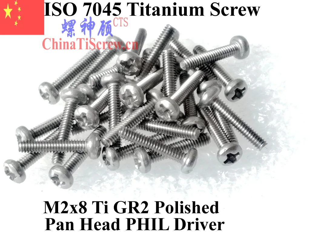 ISO 7045 M2 титановый винт M2x3, M2x4, M2x5, M2x6, M2x8, M2x10, M2x12, M2x14, M2x16, M2x18, M2x20, цилиндрическая головка, настольный драйвер Ti GR2, полированный