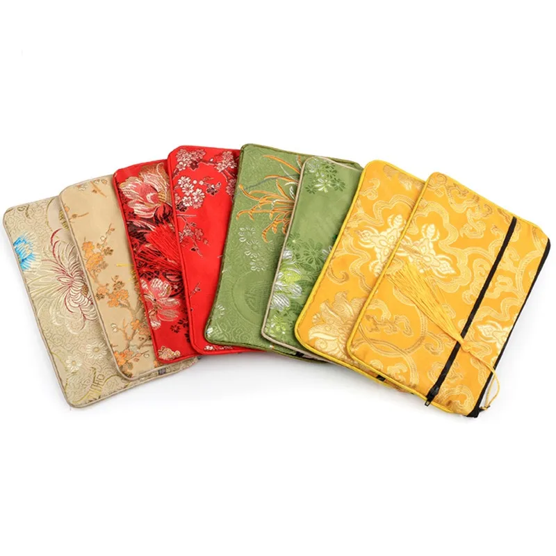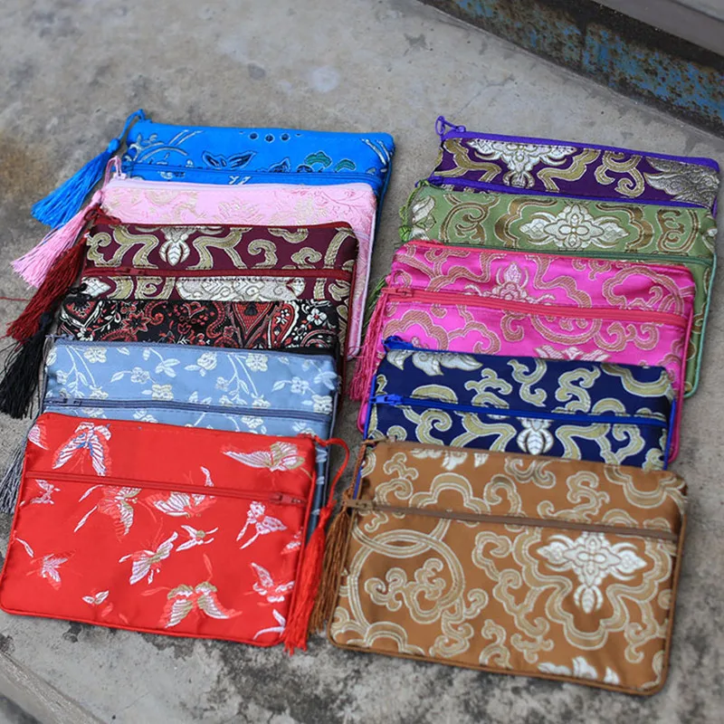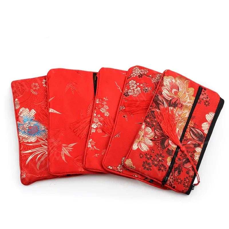 18x12 см цветочный двойной кошелек на молнии с большой кисточкой, китайские шелковые ювелирные сумки, Подарочная сумка для макияжа, кошелек для рождественской вечеринки