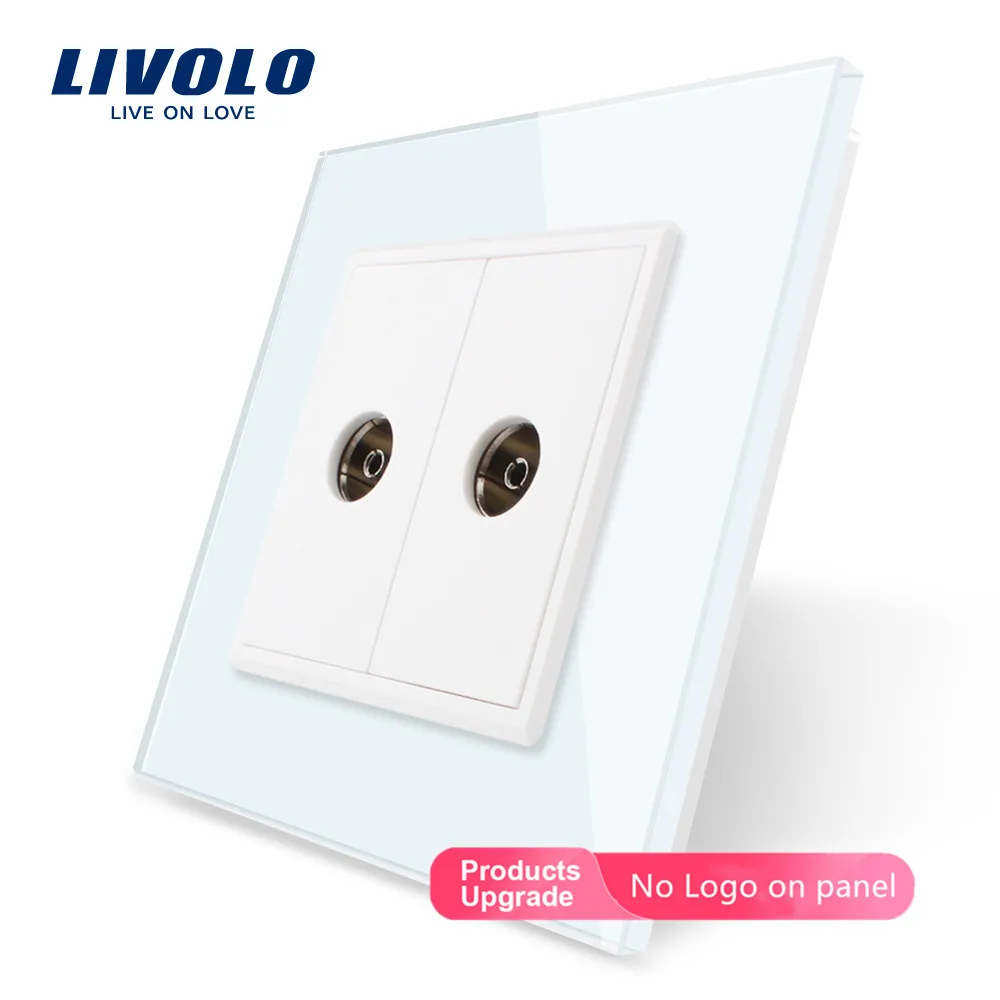 Livolo оптрозница, панель из хрустального стекла, 2 банды ТВ розеткарозетка VL-C792V-11121315, без адаптера, без логотипа