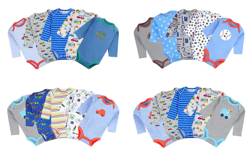 Боди детское хлопковое с длинным рукавом, 3-24 м, 5 шт.