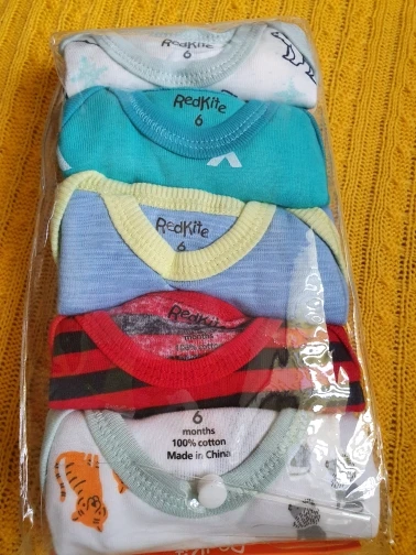 Качество приятное, всё хлопок, но разный. Две с аппликациями, остальные просто веселая расцветка. Шли недели три, доставка в постамат. Если ребенок крупный, то, конечно не соответствует размер. Сыночку 4 месяца, пока навырост, думаю к 6 месяцам подрастет. Качеством и расцветками довольна