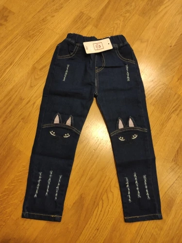 Хорошие джинсы. Немного «дополнительный» запах, но я уверен, что он исчезнет после стирки. На данный момент качество нормальное. Немного отличается от изображения (уши животного ближе), но это не мешает мне. Размер 4T подходит для детей 3 лет. Девочка.