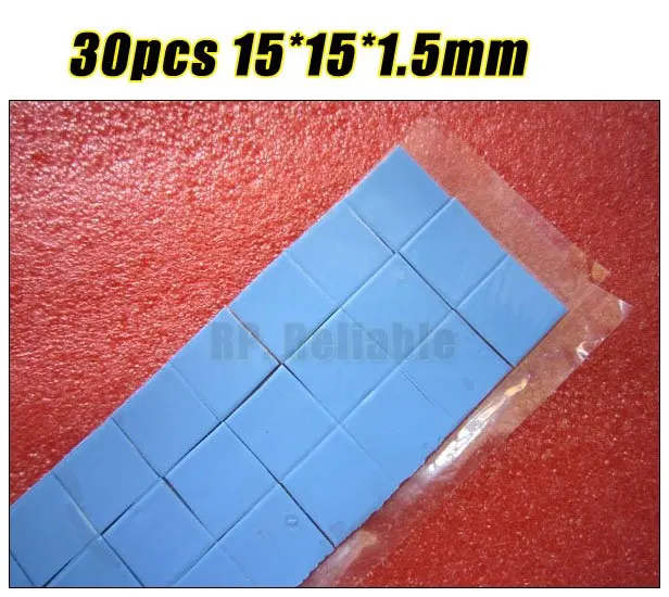 30 шт. 15*15*1,5 мм мягкая силиконовая термопрокладка/термопрокладки теплопроводность для радиатора/IC/чипсета/чипа/VGA GPU светодиодный LED GapСиний