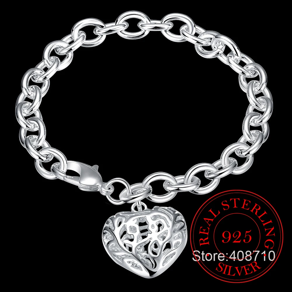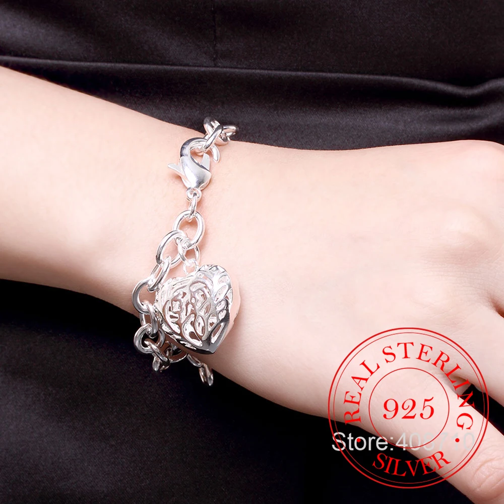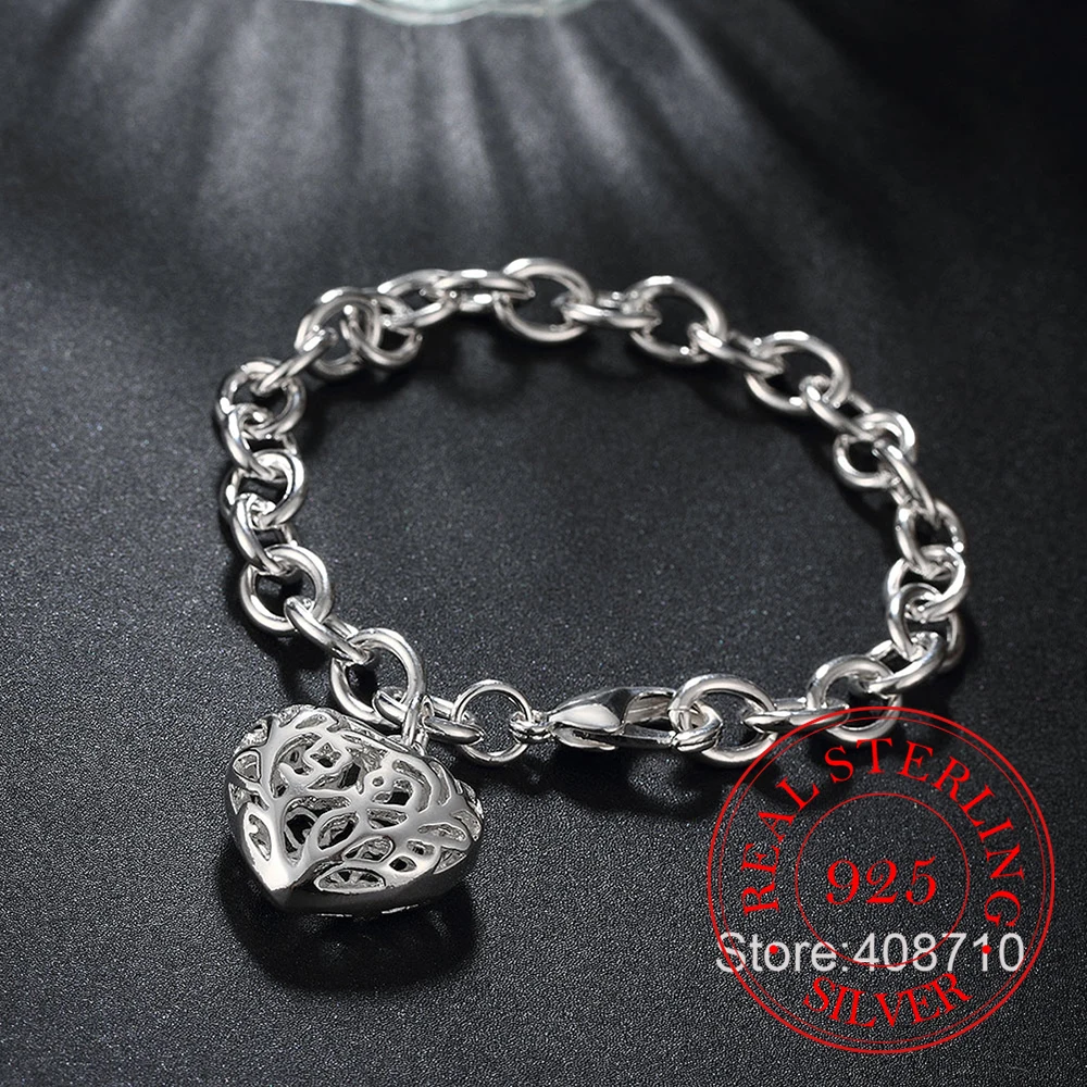 925 стерлингового серебра в форме сердца кулон цепи браслеты ювелирные изделия из жемчуга для женщин Одежда высшего качества браслеты для влюбленных Рождественский подарок