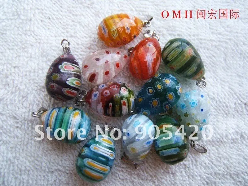 OMH оптовая продажа, 3 шт., 5 шт., смешанные цвета, 8х12 мм, 14х9 мм, стеклянные подвески в виде цветка Millefiori, ZL95