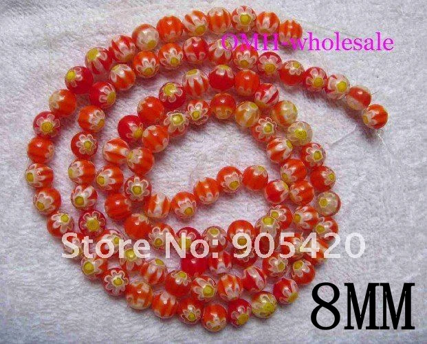 Оптовая продажа, Микс красных и синих бусин OMH 6, 8, 10, 12 мм, плоская форма, круглый стеклянный цветок milleflower, стеклянные бусины россыпью, разделительные бусины ZL72