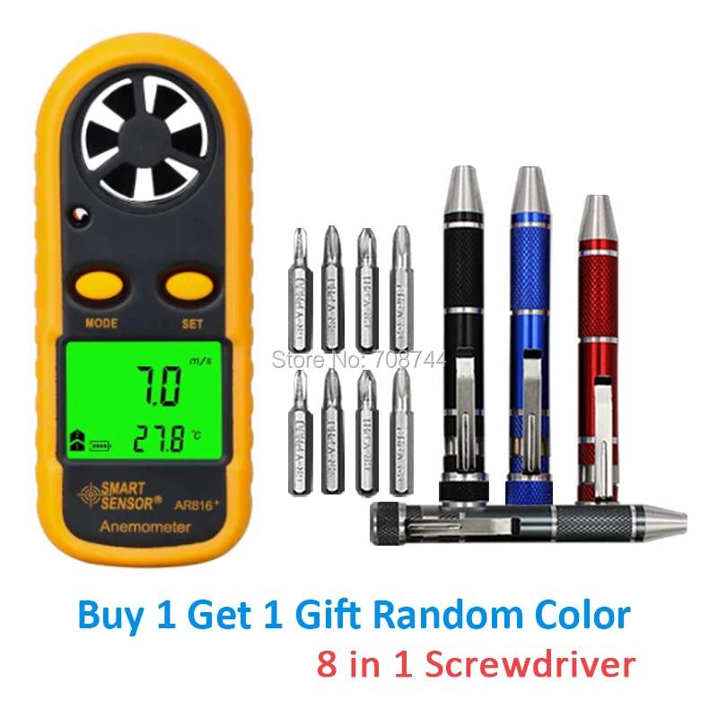 10 шт.лот Smart Sensor AR816 цифровой анемометр Поток воздуха измеритель скорости ветра