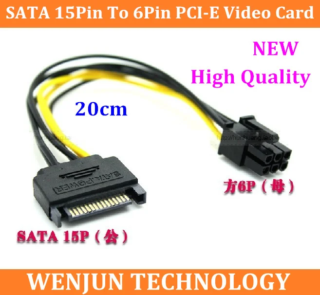 50 шт. Бесплатная доставка SATA Power 15Pin до 6Pin PCI-E видеокарта кабель питания высокое качество