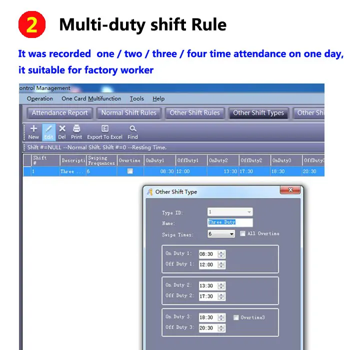 Посещаемость:Поддерживает обычные правила shif и мульти-shif правила, это может удовлетворить различные потребности посещаемости.