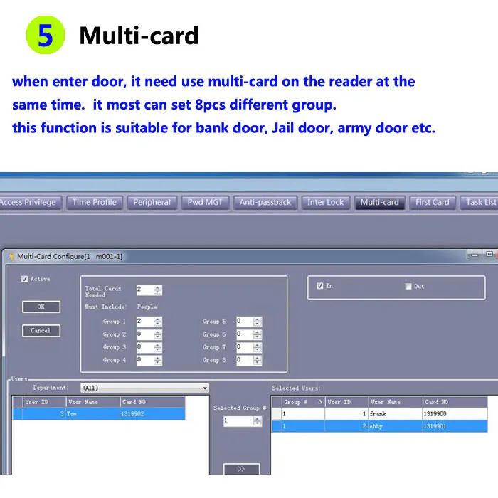 Контроль доступа: Suport Time profile / password manage / anti-passback / inter lock / first card / task list.