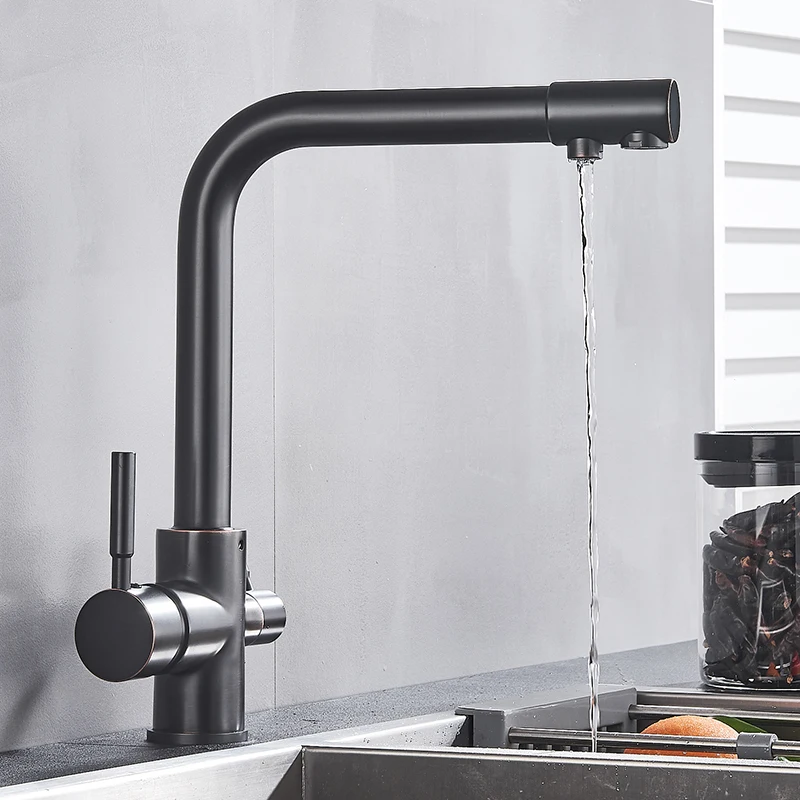 Смеситель для кухни, хромированная латунь, с двумя ручками, 3-ходовой фильтр для горячей и холодной питьевой воды