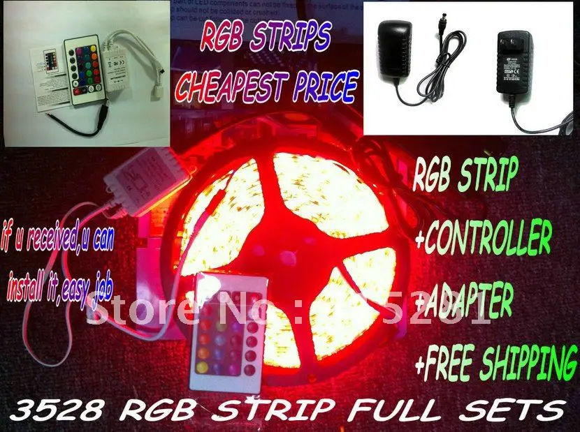 3528 Гибкая RGB Светодиодная лента, полный комплект, дешевая цена, 60 шт./м Светодиодная лента + ИК-контроллер + 12 Votage адаптер безопасный + Бесплатная доставка + хорошее QLY