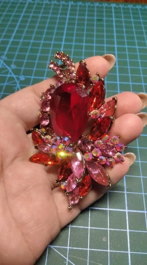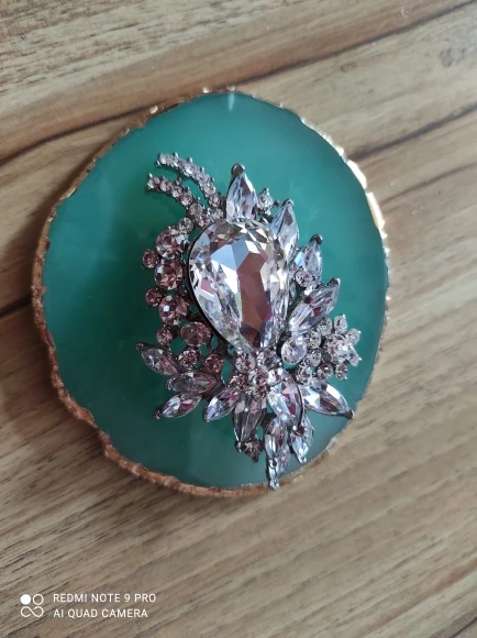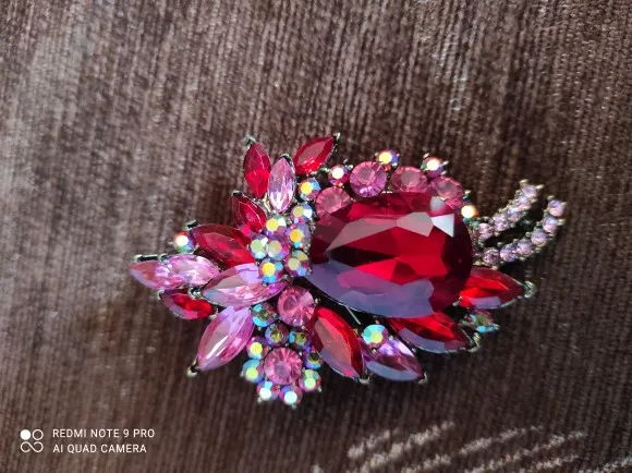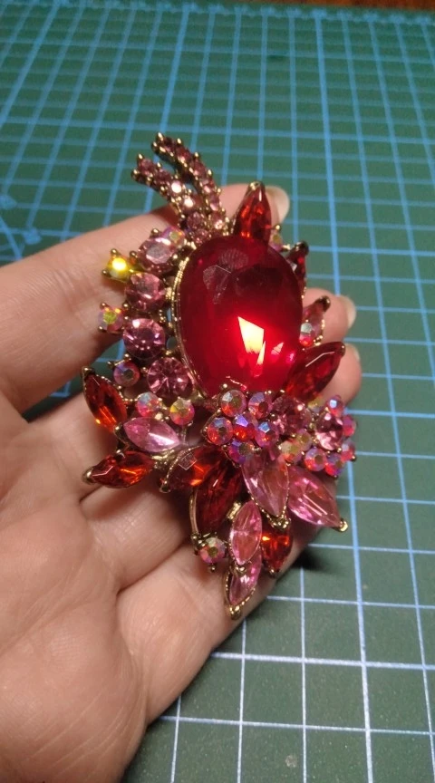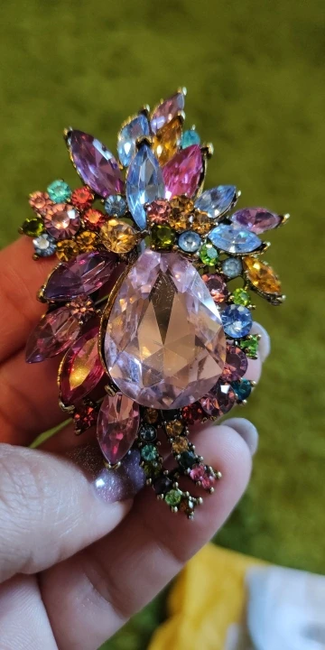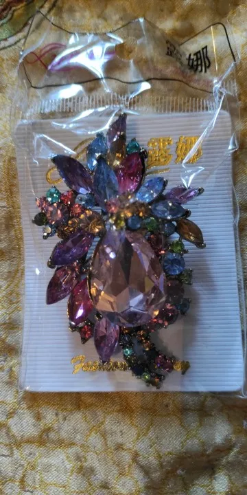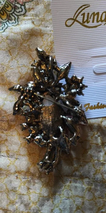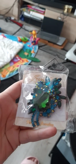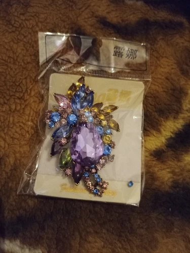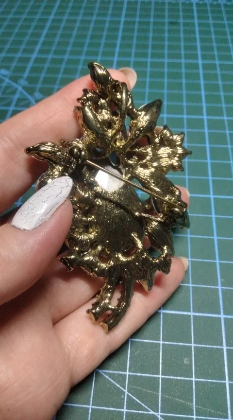 Красивая большая брошь. Очень блестящий. Выглядит очень модно. Рекомендуемый товар и продавец.