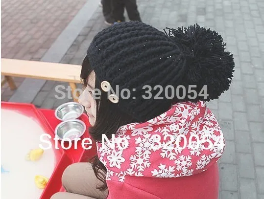 2 шт./лот, новинка, шапки с декоративными пуговицами в стиле супер Болл шаг, зимние вязаные шапки для женщин, разноцветные, бесплатная доставка
