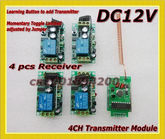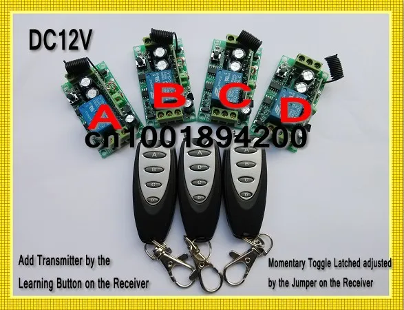 Переключение -------------- нажмите кнопку передатчика в течение 1 времени, реле приемника включено, нажмите кнопку снова, реле приемника выключено,