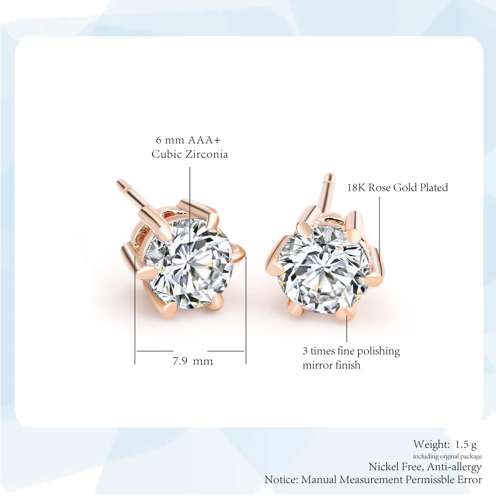 Женские классические серьги-гвоздики ZHOUYANG, 5 мм, 0,5 карата, с круглым кубическим цирконием, цвета розовое золото, модные ювелирные украшения ZYE036