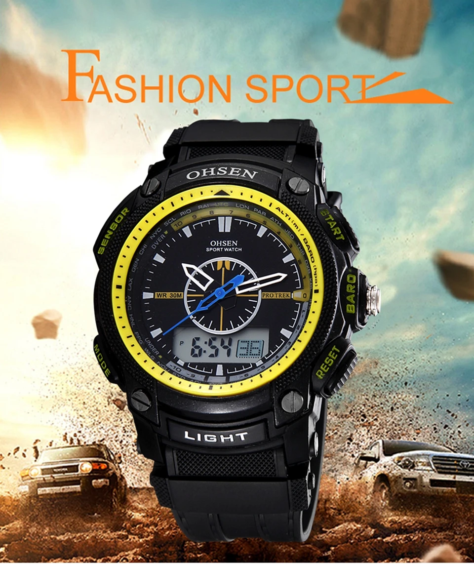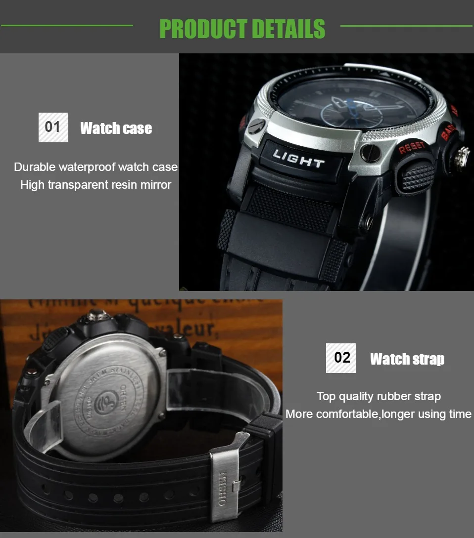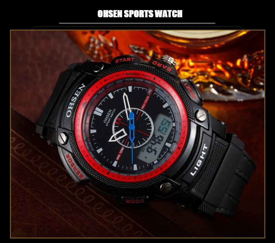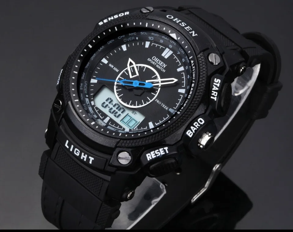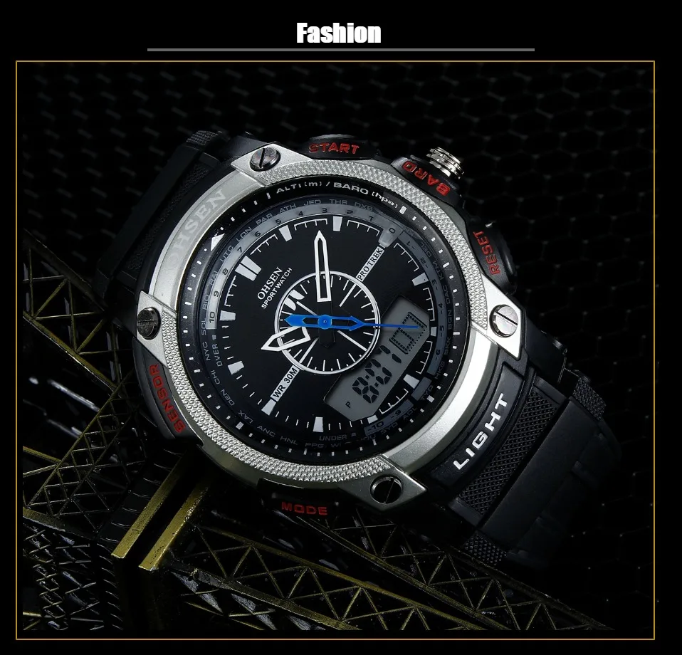 Часы мужские кварцевые с резиновым ремешком, с ЖК-дисплеем