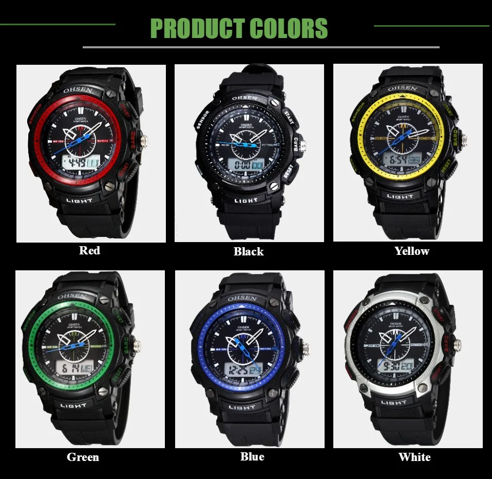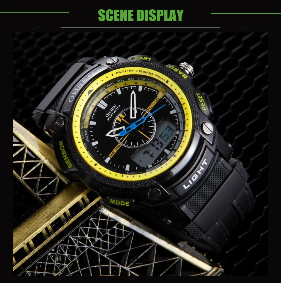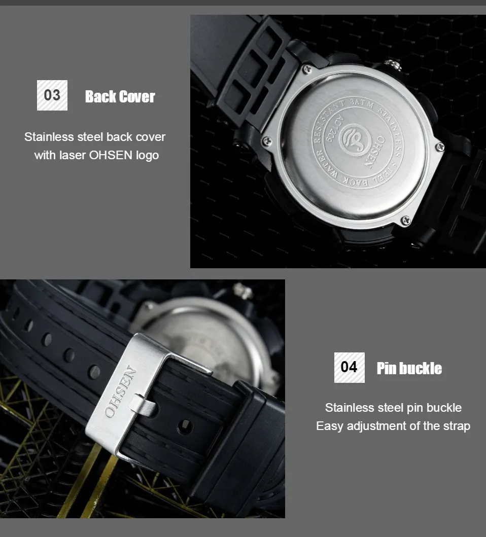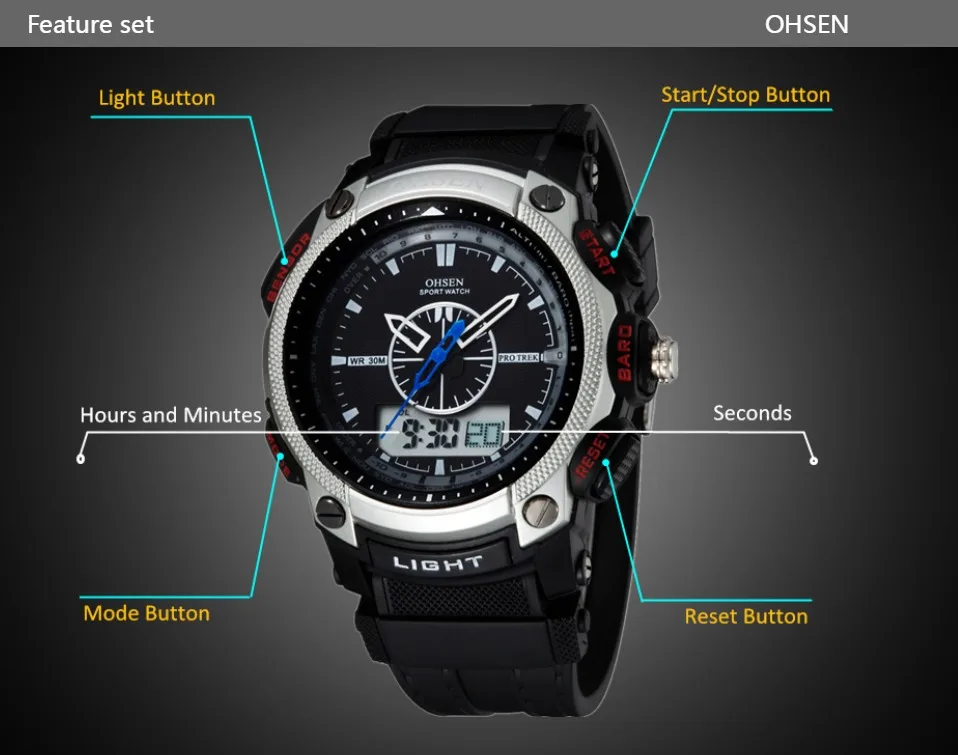 Часы мужские кварцевые с резиновым ремешком, с ЖК-дисплеем