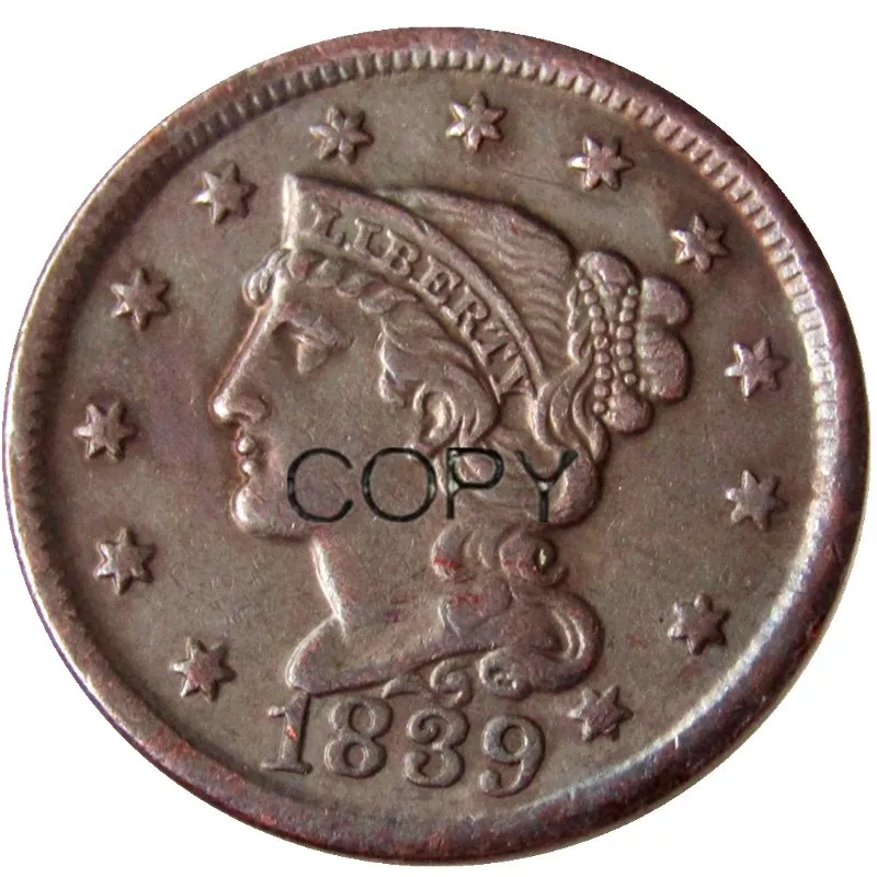 США 14 шт.лот Смешанная Дата 1839-1852 плетеные волосы большиеодин цент 100% Медные копировальные монеты