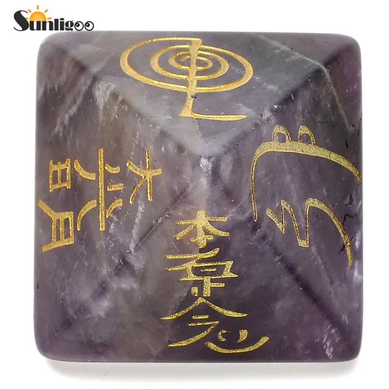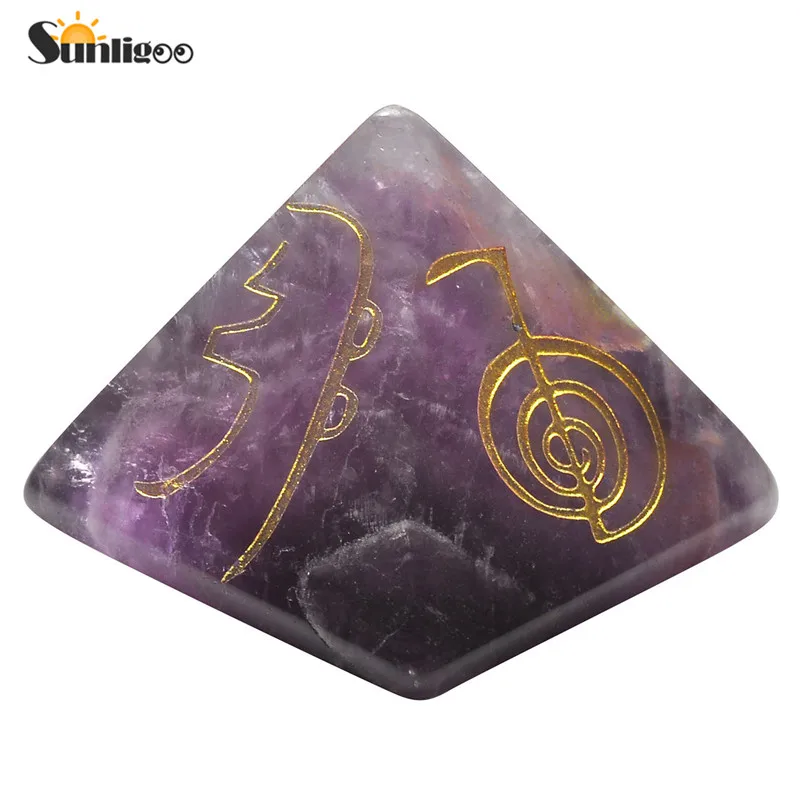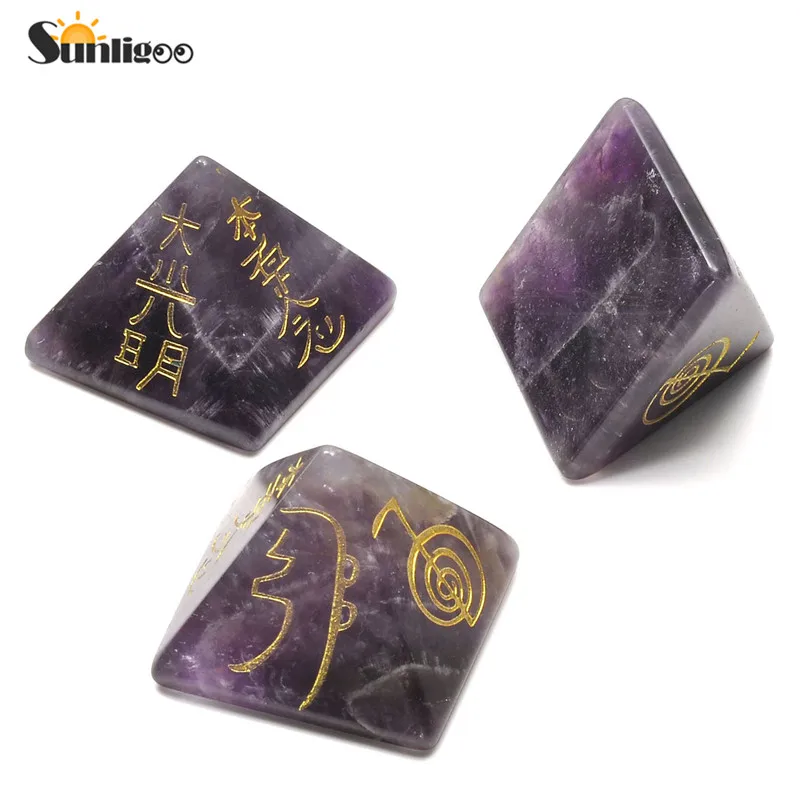 Sunligoo Прямая поставка Usui символ рейки Пирамида Аметист прозрачный кварцевый кристалл пирамид лечебный камень гравированный энергетическая Йога камень декор