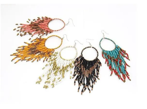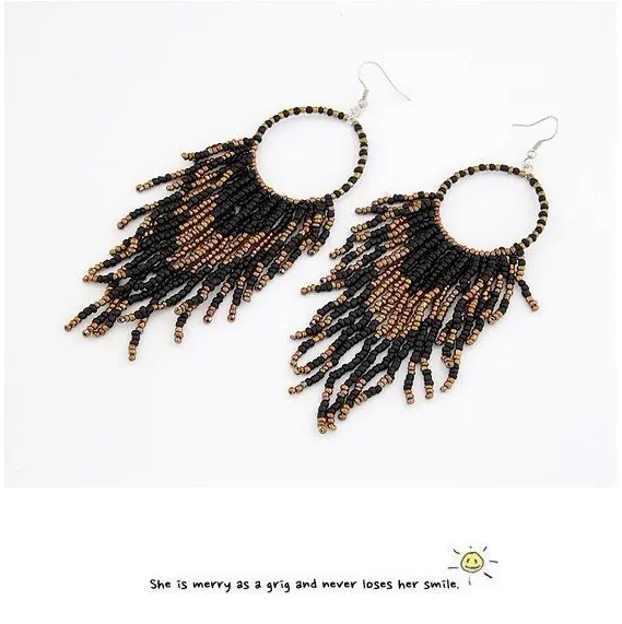 Женские богемные серьги Kymyad, бижутерия, большие эффектные серьги, бижутерия, длинные серьги-кисточки с бусинами, бохо Этнические украшения