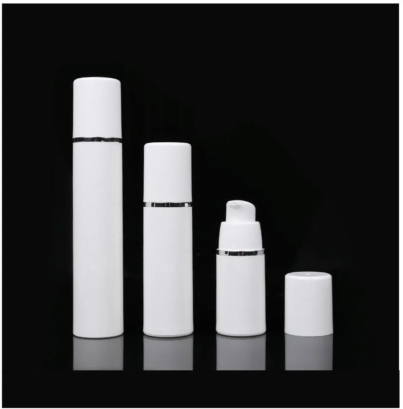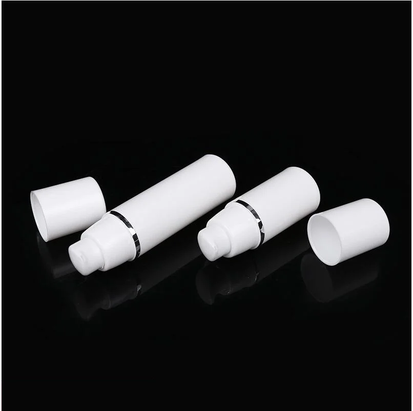 Белая Вакуумная бутылка для лосьона без воздуха, 30 мл, с серебряной линией, сыворотка для кожи вокруг глаз, Жидкая основа для макияжа, комплексная восстанавливающая упаковка